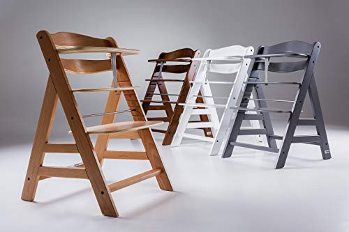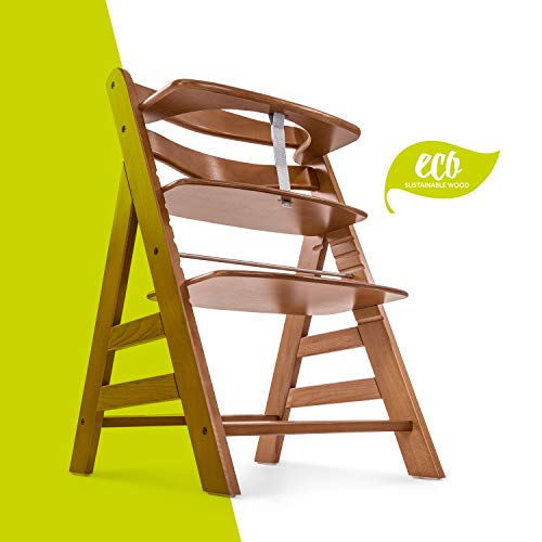 Hauck Alpha+, Seggiolone Pappa Evolutivo in Legno, da 6 Mesi a 90 kg, Altezza Regolabile, Compatibile con hauck Alpha Bouncer per Neonati, Walnut