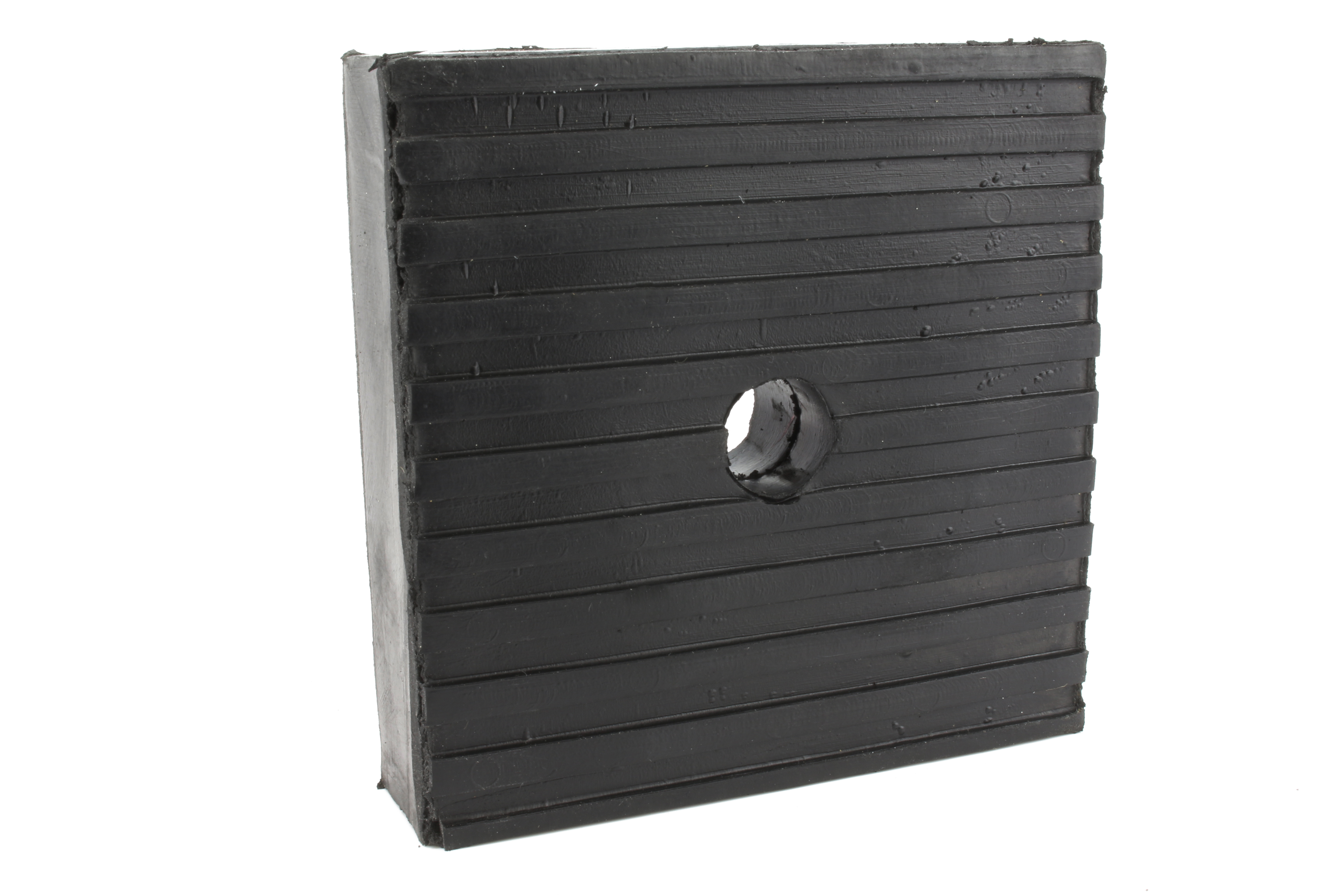 4" industrial solid rubber anti-vibration pad. This is a high-quality anti-vibration pad that measures 4" square and 1" thick. This solid rubber anti-vibration pad features an anti-skid top and bottom surface. This vibration pad comes with a 5/8" hole in the center of the pad to anchor through. This pad is perfect for use with air compressors, HVAC, and all sorts of heavy-duty equipment. Using this vibration pad will cut down on operating stress, equipment wear, and noise with your machinery.