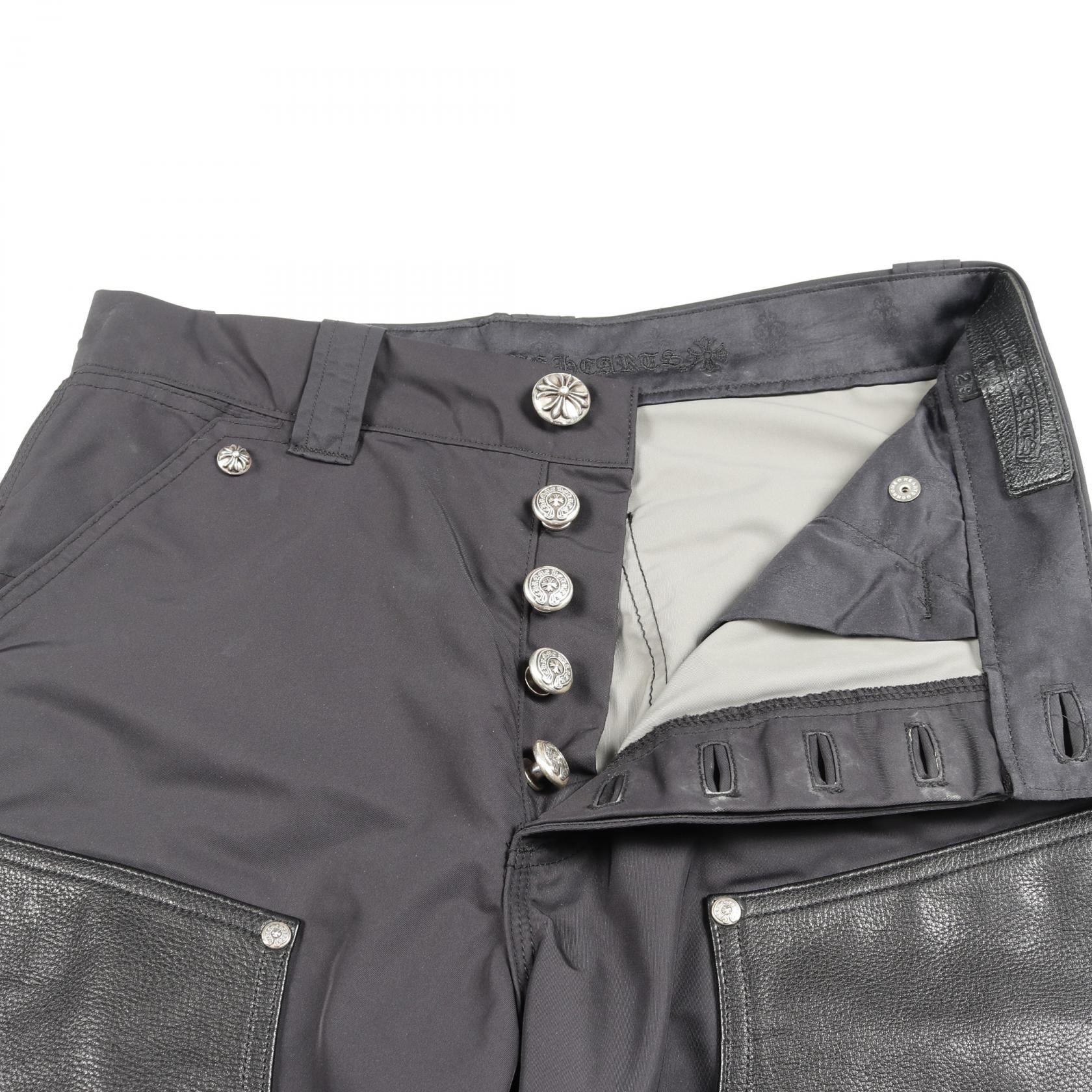 | Item Name | CHROME HEARTS Cross ball button Pants leather Nylon Black #29 Used mens |