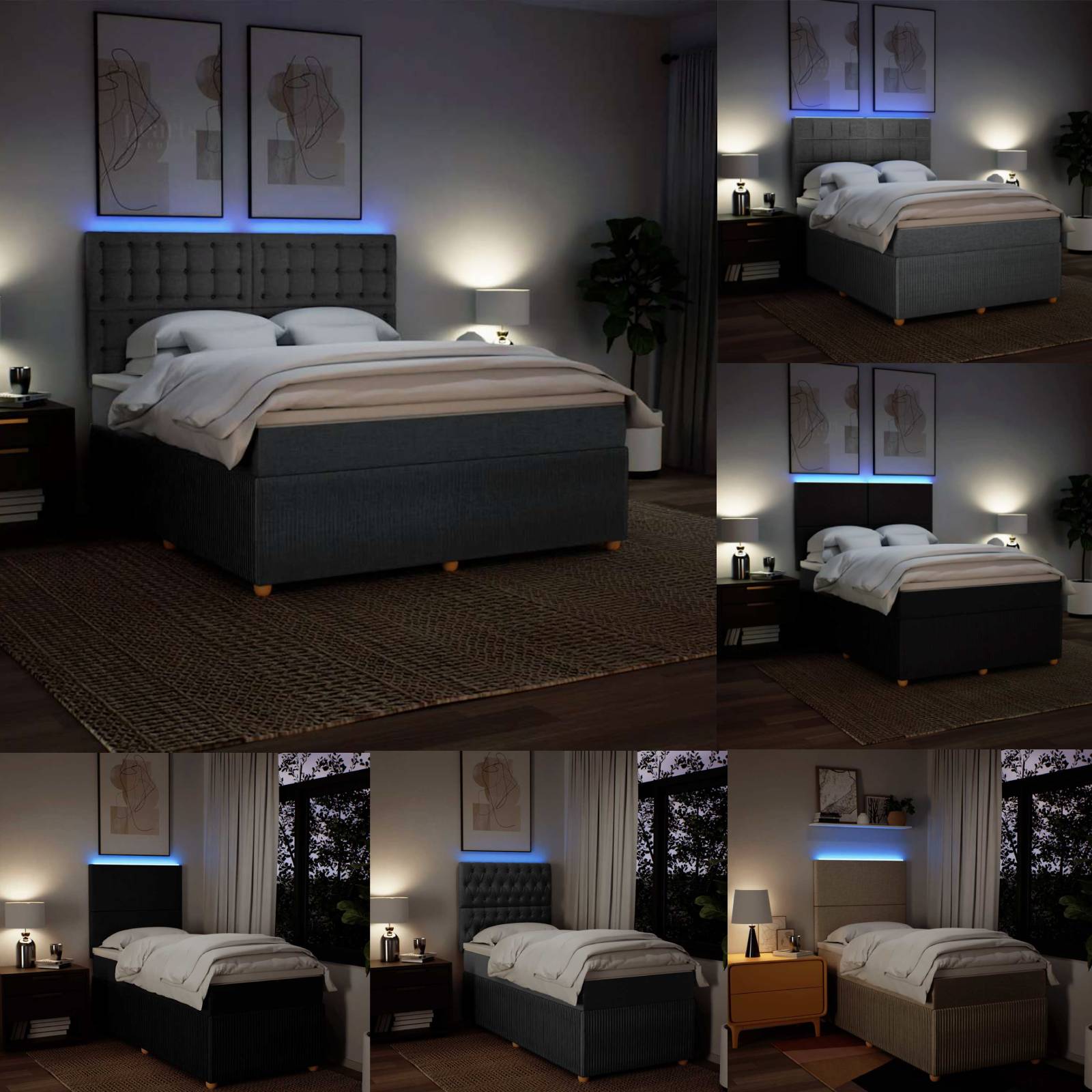 Mit diesem Boxspringbett genießt du eine erholsame Nachtruhe! Es sorgt für maximale Entspannung und einen angenehmen Schlaf. Weiches und strapazierfähiges Material: Das Polyestergewebe vereint Weichheit, Atmungsaktivität und Strapazierfähigkeit, sodass du ultimativen Komfort und Gemütlichkeit im Bett erlebst. Taschenfederkernmatratze: Diese Matratze hat einzelne Taschenfedern, die unabhängig voneinander arbeiten. Somit bietet sie dir optimalen Halt, indem sie auf Druckstellen in jedem Bereich unabhängig reagieren. Diese Konstruktion verhindert das "Zusammenrollen" und reduziert die Bewegungsübertragung im Vergleich zu alten Federkernmatratzen. Jede Taschenfeder stützt die Körper-Druckstellen individuell. LED-Beleuchtung für ein angenehmes Ambiente: Dieses Bett verfügt über LED-Leuchten, die einfach eingestellt werden können, um eine persönliche Lichtshow zu kreieren. Du kannst die Modi, Farben und Helligkeit anpassen, um das Ambiente deines Innenraums zu verbessern. Höhenverstellbares Kopfteil: Das Kopfteil ist nach Wunsch höhenverstellbar. Komfortable Matratzenauflage: Die Auflage verbessert den Halt und den Komfort mit ihrer weichen, atmungsaktiven Oberfläche und verlängert gleichzeitig die Lebensdauer deiner Matratze. Der abnehmbare Bezug ermöglicht ein einfaches Waschen, was die Pflege der Matratze zum Kinderspiel macht. Gut zu wissen: Das Produkt verfügt über einen USB-Anschluss, für den eine zertifizierte 5V-USB-Stromquelle erforderlich ist (nicht im Lieferumfang enthalten). Aus hygienischen Gründen kann die Matratze nicht zurückgegeben werden, wenn die Verpackung entfernt oder geöffnet wurde. Nur der Teil mit dem Symbol kann geschnitten werden und nur der Teil mit dem USB funktioniert auch weiterhin.