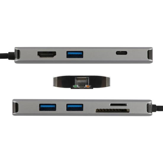 8-in-1 USB-C 3.2 Gen 1 Multimedia Hub, Three USB-A 3.2 Gen 1 Ports, USB-C Charging Port, SD card, HDMI 2.0, Gigabit Ethernet Port, Multi-Platform Compatibility, Plug & Play by Xcellon