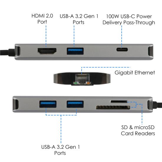 - USB-A Ports:Boost the capabilities of your USB-C port with three USB-A 3.2 Gen 1 ports. Each supports up to 5 Gb/s transfers with SSD drives and other compatible peripherals.