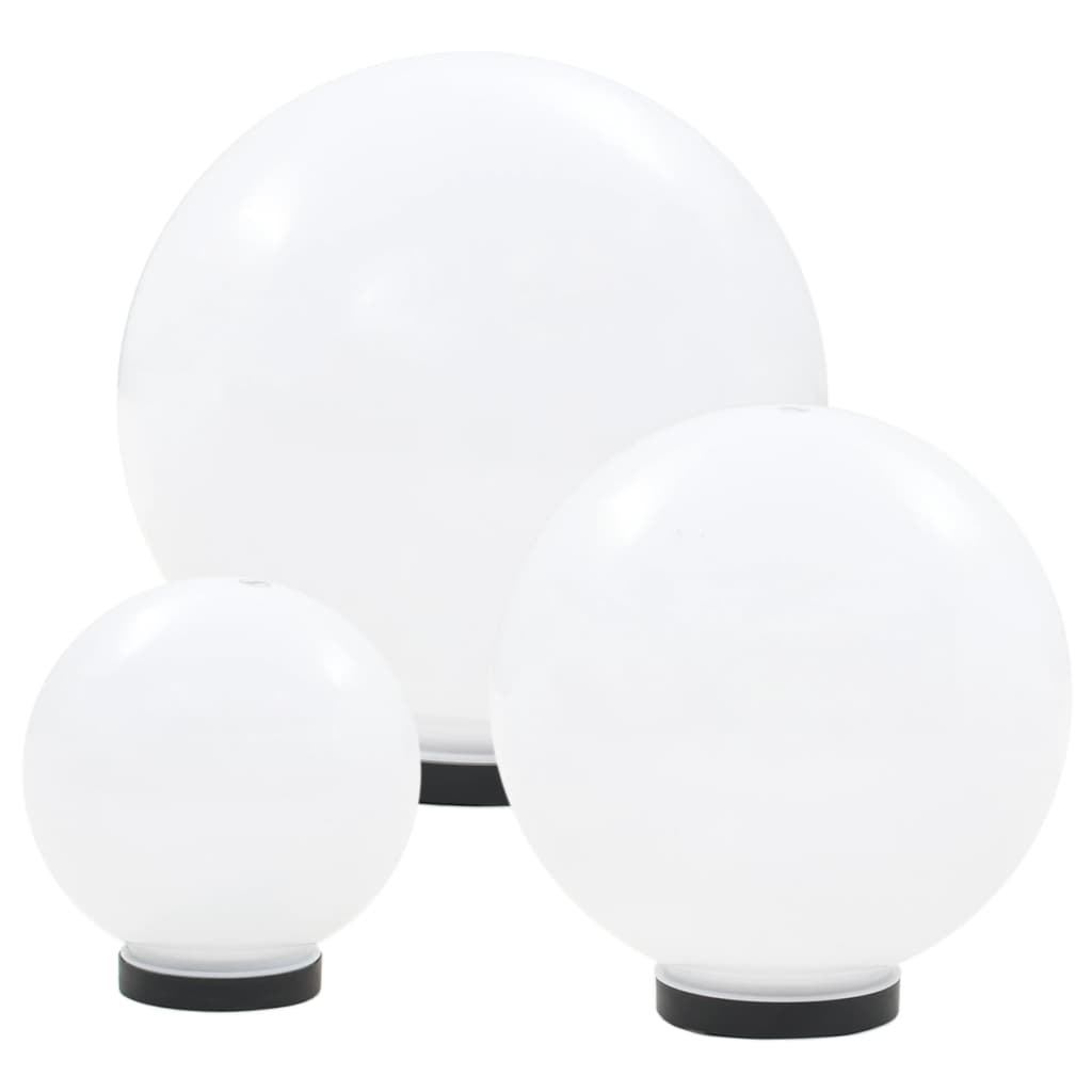 Dieses Set aus 3 LED-Kugellampen ist eine perfekte Beleuchtung für Gärten, Terrassen, Wege sowie Höfe. Alle Kugelleuchten bestehen aus langlebigem Polymethylmethacrylat, das jahrelang haltbar ist. Diese Gartenleuchten sind für alle geeignet, die nach einer funktionalen, sicheren und stimmungsvollen Beleuchtung für ihren Garten suchen und dabei vor allem Wert auf Qualität und Langlebigkeit legen. Diese Kugellampen verfügen über E27-Fassungen. Die Lieferung umfasst 3 kugelförmige Gartenleuchten (20/30/40 cm). Bitte beachten Sie, dass die LED-Leuchtmittel nicht im Lieferumfang enthalten sind.