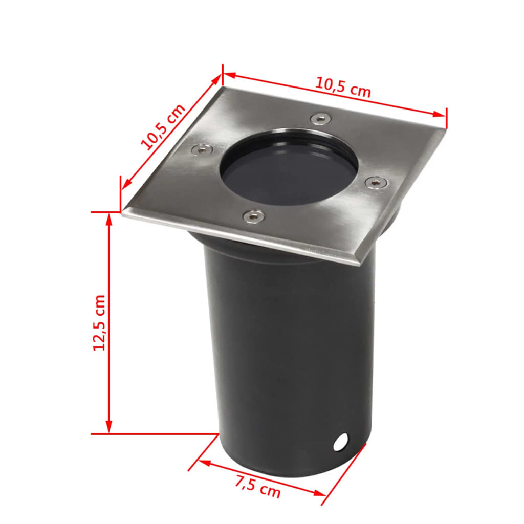 Dieses Set aus 12 Bodeneinbauleuchten ist ideal, um den Garten, den Hof, das Haus zu beleuchten und gleichzeitig aufzuwerten. Die Bodenstrahler sind aus rostfreiem Stahl gefertigt und sind mit einer Scheibe aus gehärtetem Glas versehen. Diese Gartenstrahler können mit GU10-Leuchtmitteln verwendet werden. Die Lieferung umfasst 12 Strahler (Leuchtmittel nicht enthalten).