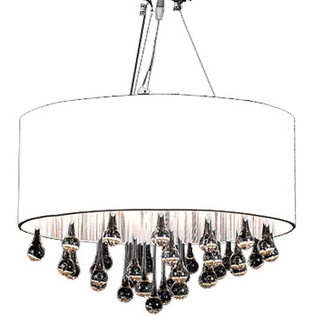 Der Kristall Kronleuchter verleiht jedem Raum durch seine 85 echten Glas Kristalle eine einzigartige Eleganz. Der 3-flammige Kronleuchter wird durch seine geschliffenen Prismen und seine majestätische Erscheinung in jedem Ambiente zu einem richtigen Blickfang. Die Prismen des Kronleuchters strahlen bei Lichteinwirkung (auch einer anderen Lichtquelle) in allen Spektralfarben und sorgen für eine angenehme und warme Lichtentfaltung. Der Kronleuchter verfügt außerdem über ein verchromtes Metall Gehäuse sowie einen schwarzen Lampenschirm, was den Raum in ein gediegenes, atmosphärisches Licht taucht.