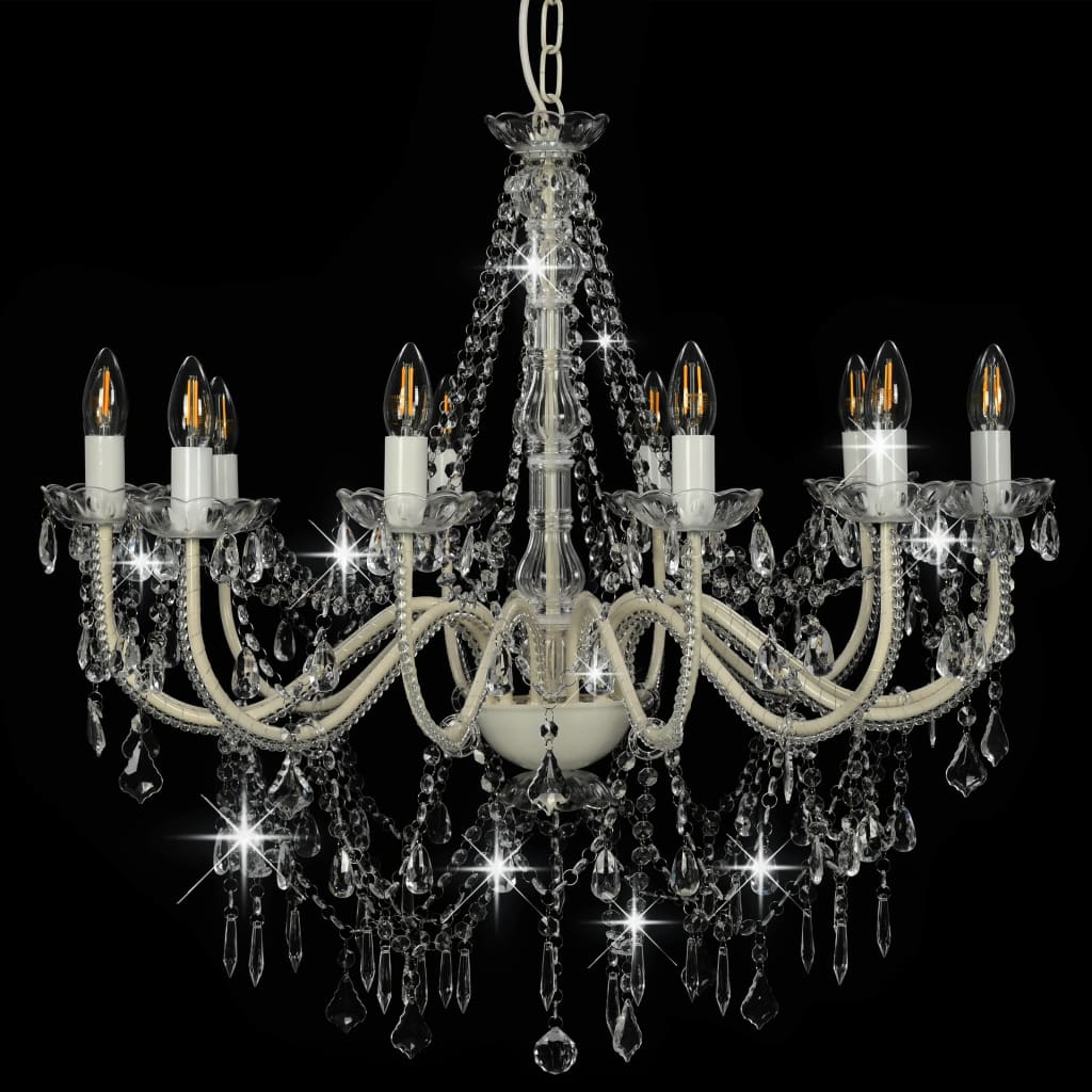 Kronleuchter Kronlampe Hängelampe Deckenleuchte mit Perlen12 x E14-Fassungen