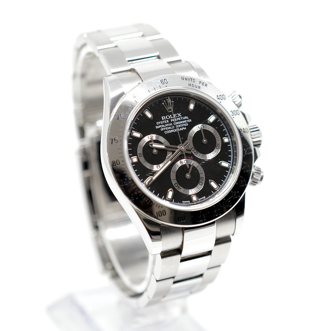 The condition of this watch is excellent, we purchased this watch directly from the original owner who wore it sparingly. Finding one of these models in this condition is a dream find. This Rolex Daytona 116520 model has become highly sought after and are continuously rising in value and therefore makes for a great investment.