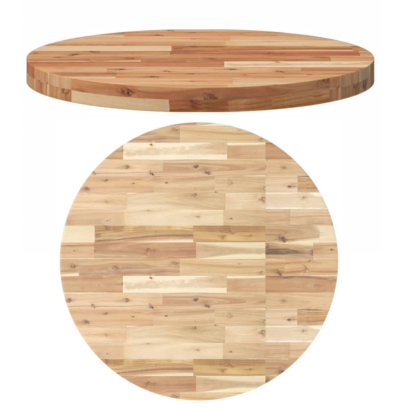 Mit dieser Tischplatte aus Holz kannst du jedem Tisch neues Leben einhauchen. Sie eignet sich ideal für den Einsatz in den eigenen vier Wänden oder in einer Geschäftsumgebung.Langlebiges Material: Massives Akazienholz ist ein schönes Naturmaterial. Akazienholz ist ein tropisches Hartholz, das dicht, robust und langlebig ist.Vielseitig einsetzbar: Je nach ausgewählter Größe eignet sich diese Tischplatte für Esstische, Bistrotische, Beistelltische, Bartische oder Couchtische.Pflegeleicht: Dank ihrer glatten Oberfläche lässt sich die Tischplatte mit einem feuchten Tuch leicht reinigen und erfordert wenig Pflege.Unbehandelte Oberfläche: Diese Arbeitsplatte besteht aus unbehandeltem Akazienholz. Dabei kannst du ihre natürliche Farbe beibehalten, sie aber auch nach Belieben anstreichen oder lackieren.Runde Form: Durch die runde Form wird das Verletzungsrisiko verringert und die Sicherheit deines Kindes und deiner Familie gewährleistet.