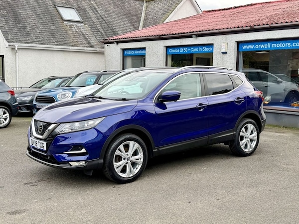 Here at Orwell Motors we are delighted to offer for sale this nice example Nissan Qashqai 1.2 DIG-T N-Connecta finished in Ink Blue Metallic with contrasting Grey Cloth Interior. This car comes with a Service History and 2 Keys supplied. Spec for this car includes Automatic Climate Control, Satellite Navigation.DAB Radio with Media Connectivity, Cruise Control, Electric Folding Mirrors, Front and Rear Parking Sensors with Reversing Camera, Rear Privacy Glass, Multi-Function Steering Wheel, 18 Inch Alloy Wheels, Automatic Lights and Bluetooth.