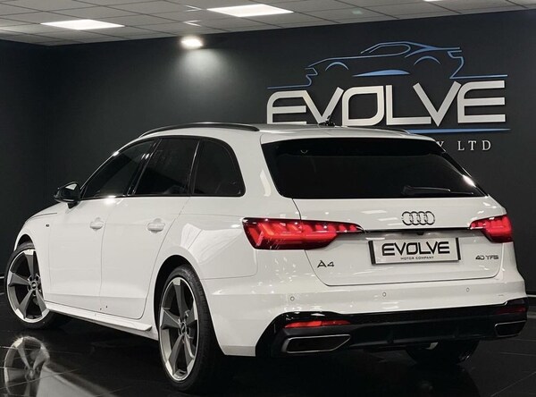 Great Example Audi A4 Avant S-Line Avant Black Edition TFSI 40 S Line Finished In Glacier White with 47,600 Miles Benfitting from Great Service History Specification to Include: Audi Sound System, Reverse Camera, Parking Sensors 20" Rotar Style Alloys Automatic LED Headlights Satellite Navigation S-Line Interior Bluetooth Connectivity .Leather-Alcantara - Rotor Grey, Glacier White, 19in Alloy Wheels - 5-Arm Rotor Matt Titanium Look, 19in Alloy Wheels - 5-Arm Flag Design - Audi Sport - Diamond Cut Gloss Anthracite Black, 2 USB Charging Ports, 4-Way Electric Lumbar Support, 6-Airbag System, 8 Passive Loudspeakers, Anti Theft Locking Wheel Bolts, Anti-Theft Alarm, Audi Connect Infotainment Services (36 Month Subscription From New), Audi Connect with Amazon Alexa Integration, Audi Drive Select, Audi Rings in Black and Black Model Badging and Removed Engine Badging, Audi Smartphone Interface, Audi Virtual Cockpit, Auto-Dimming Rear-View Mirror, Automatic Start-Stop with Coasting Functionality and Efficiency Programme, Bluetooth Interface, Body Coloured Side Sill Trims, Cloth Headlining in Black, Contrast Stitching on Seats - Steering Wheel and Gear-Lever Gaiter, Cruise Control System with Speed Limiter, DAB Digital Radio Reception, Deluxe 3-Zone Electronic Climate Control, Door Handles - Body Coloured, Door Mirrors - Folding with Auto-Dimming, ESC - Electronic Stabilisation Control inc ABS - ASR and EDL, Electric Load Area Cover, Electric Windows - Front, Electromechanical Power Steering, Email - Calendar and Text Messages can be Displayed on your Vehicles MMI, First Aid Kit and Warning Triangle, Flat-Bottomed 3-Spoke Leather High Multi-Function Sport Steering Wheel, Front Centre Armrest, Front Spoiler Lip in Body Colour, Front Sports Seats, Gear-lever Knob in Black Perforated Leather, Headlights - High-Beam Assist, Heated Front Seats, High Gloss Package, Hill Hold Assist, ISOFIX Child Seat Mounting and Top Tether, Illuminated Door Sill Trims with S Logo, Inlays - Piano Finish - Black, Keyless Go, LED Headlights with LED Rear Lights and Dynamic Rear Indicators, LED Interior Lighting Pack, Light and Rain Sensor, MMI Navigation Plus including MMI Touch, Manual Seat Adjustment, Multi Collision Brake Assist, Parking System Plus - Front and Rear Sensors, Pedals and Footrest - Stainless Steel, Pop-Up Bonnet for Pedestrian Protection, Power Operated Tailgate, Pre-Sense City, Privacy Glass, Radiator Grille with Honeycomb Structure in Grained Matt Black, Rear-View Camera, S Line Rear Diffuser in Matt Titanium Black with Trim Strip in Matt Aluminium Silver, S line Front and Rear Bumpers and Side Skirts, Seat Belt Monitoring, Side Air Inlets in Grained Matt Black with Inlay in Matt Aluminium Silver, Split-Folding Rear Seat Bench in 3 Parts - 40-20-40 with Rear Centre Armrest, Sport Suspension, Steering