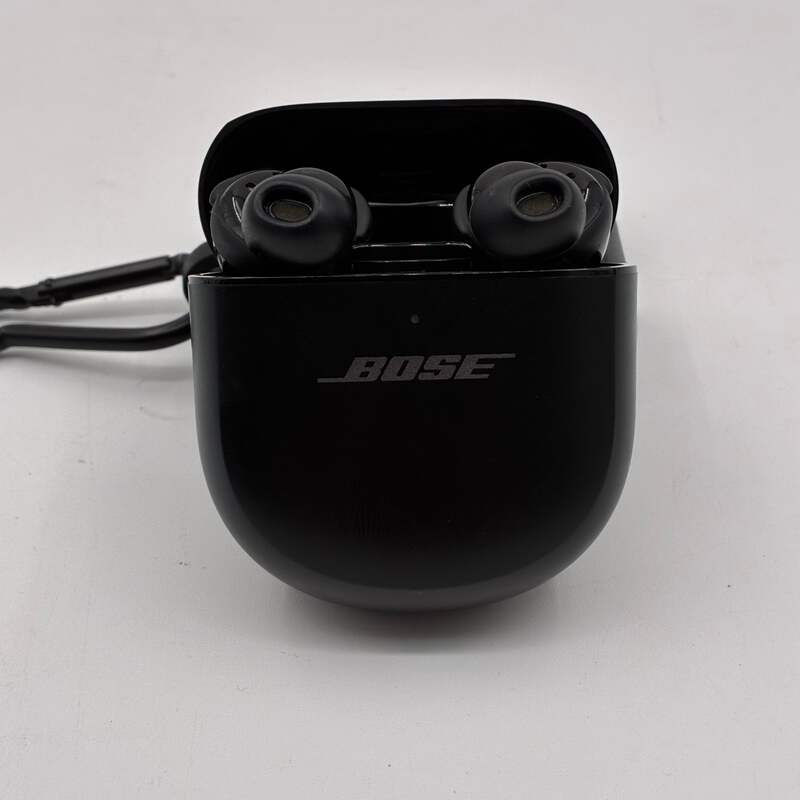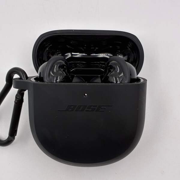 These Bose QuietComfort Earbuds II in black are in excellent condition with minimal signs of wear. They have been well cared for and function perfectly. A protective case is included for added convenience.