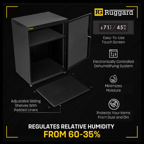 Protect your valuable cameras, lenses, electronics, and other sensitive gear from moisture, dust, and corrosion with the Ruggard 80 liter electronic dry cabinet. Designed for photographers, content creators, and tech professionals, this dry storage solution offers precise humidity control and silent operation, helping preserve the life and performance of your equipment.
