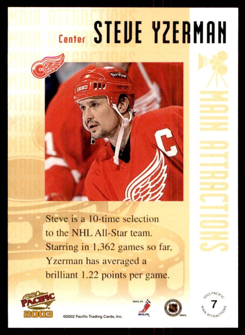 | 2002-03 Pacific Main Attractions Steve Yzerman Detroit Red Wings #7 |