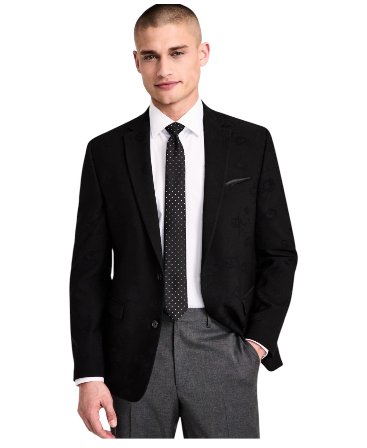 Jacquard florals bring the star power to this Bar Iii jacket, giving you a stunning look for a night out.