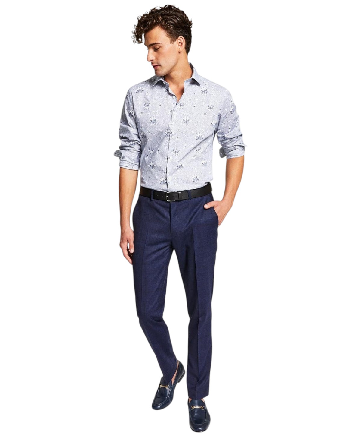 Bar Iii Mens Skinny fit Dress Pants 32 / 32 Navy Blue Plaid Stretch