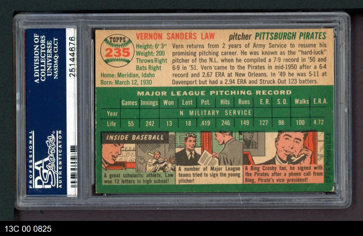 | 1954 Topps #235 Vern Law | PSA 5 - EX | Front | Back |