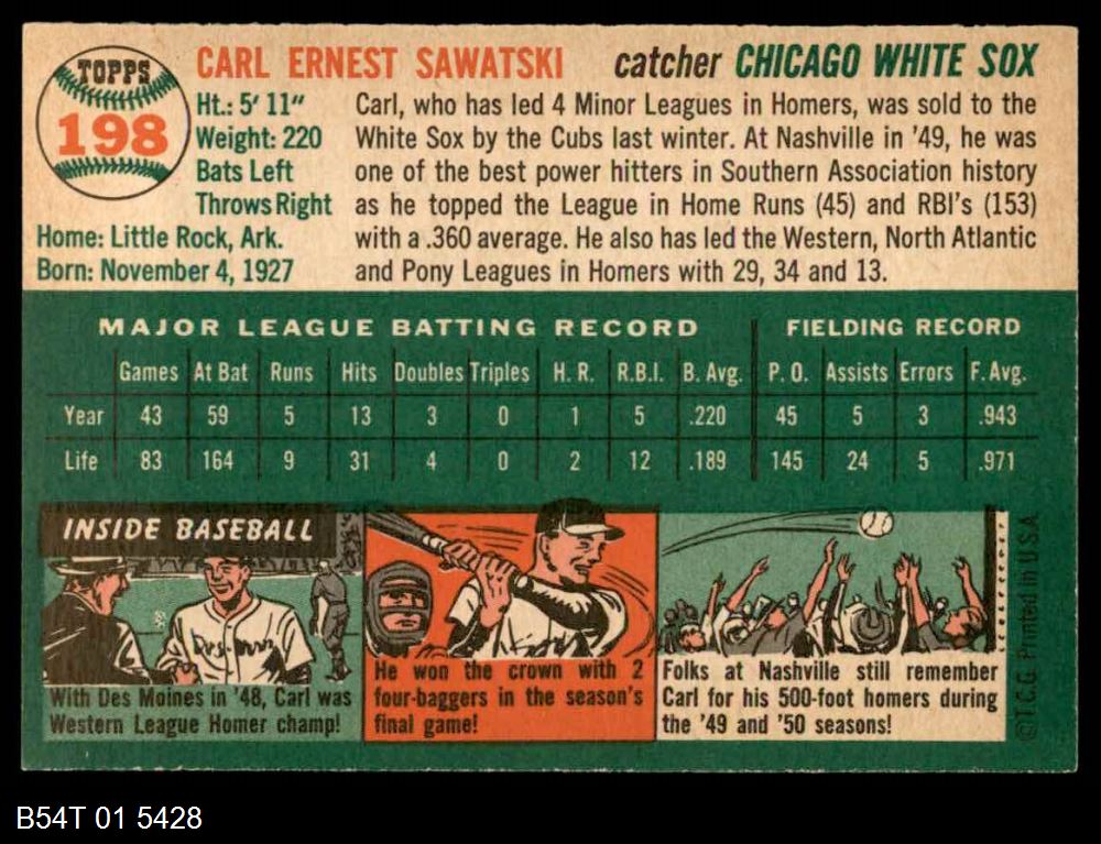 | 1954 Topps #198 Carl Sawatski | 5 - EX | Front | Back |