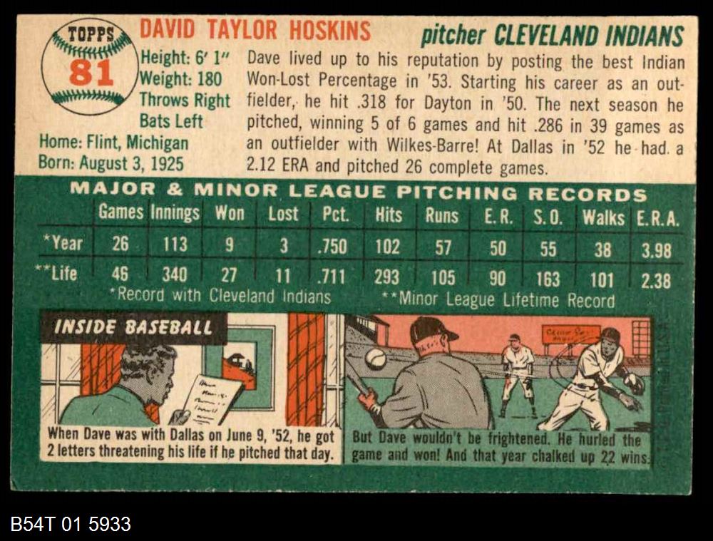 | 1954 Topps #81 Dave Hoskins | 4 - VG/EX | Front | Back |