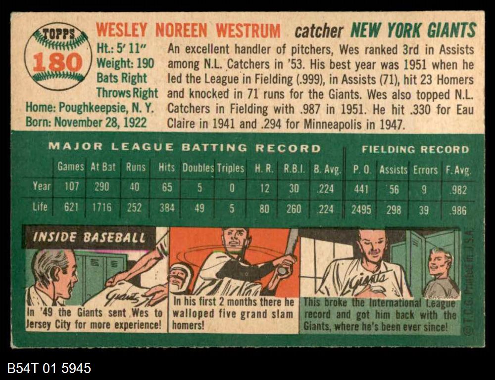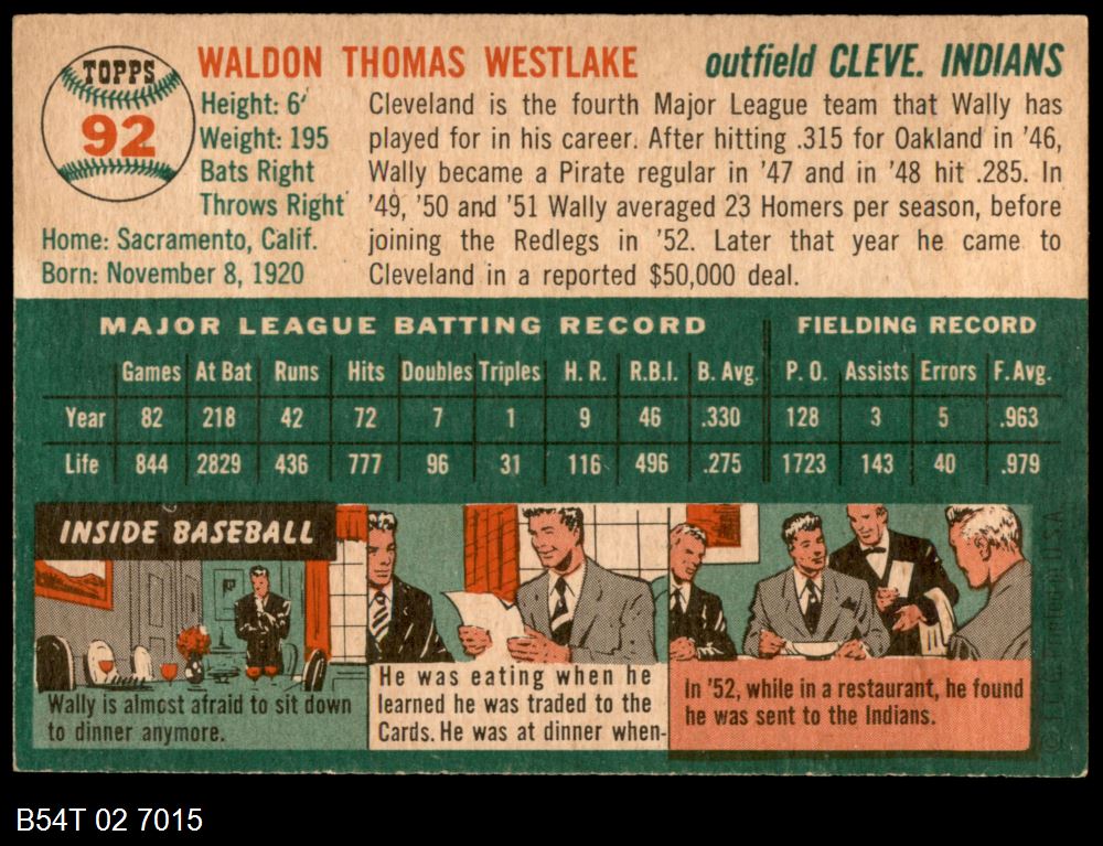 | 1954 Topps #92 Wally Westlake | 4 - VG/EX | Front | Back |