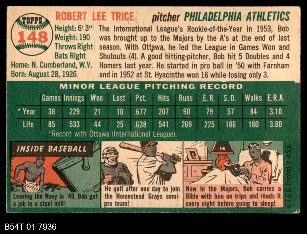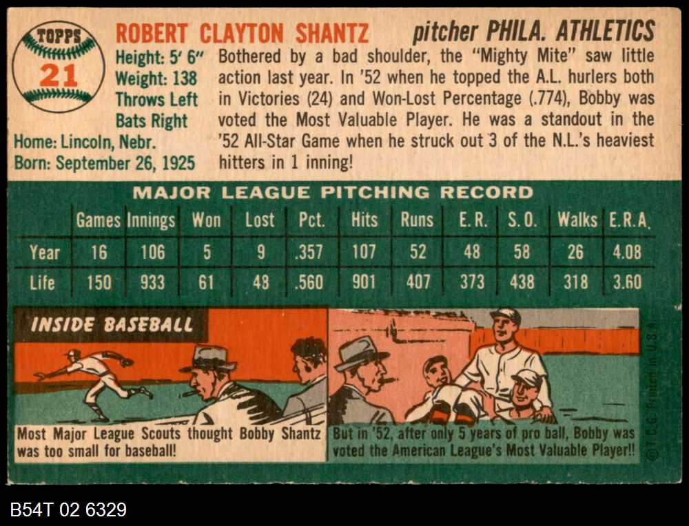 | 1954 Topps #21 WHT Bobby Shantz | 5 - EX | Front | Back |