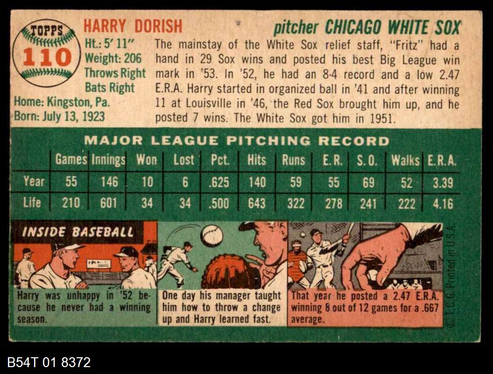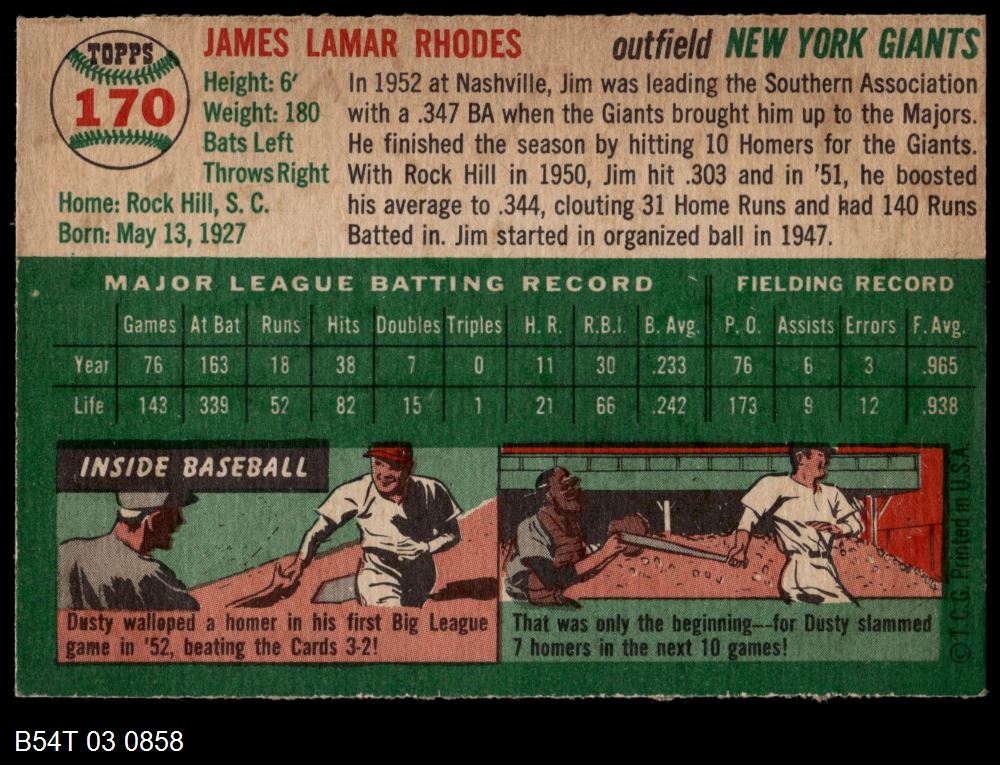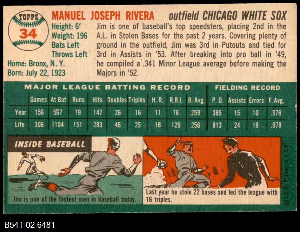 | 1954 Topps #34 WHT Jim Rivera | 5 - EX | Front | Back |