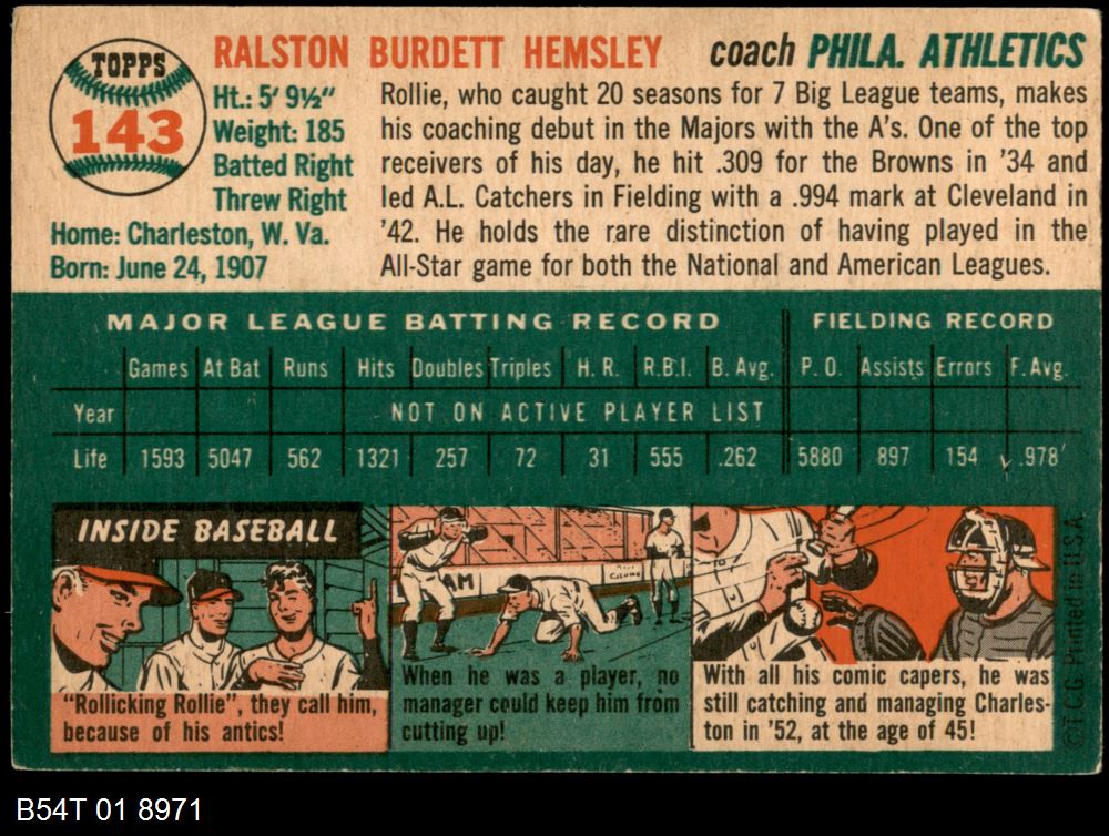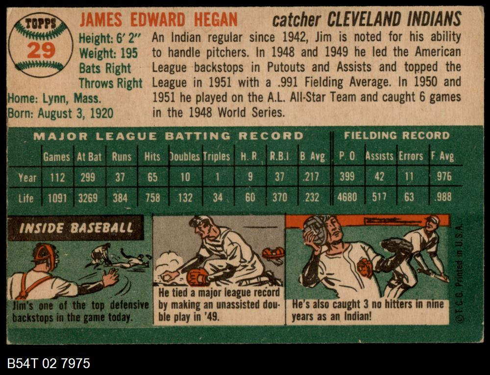 | 1954 Topps #29 WHT Jim Hegan | 5 - EX | Front | Back |