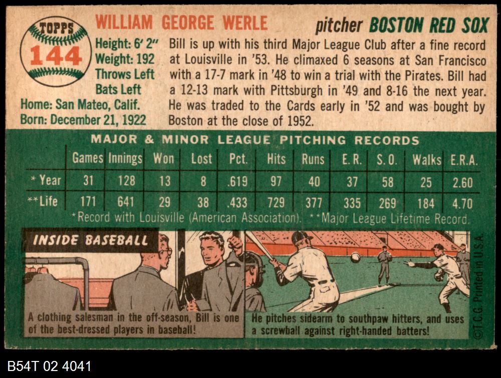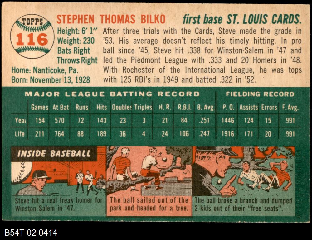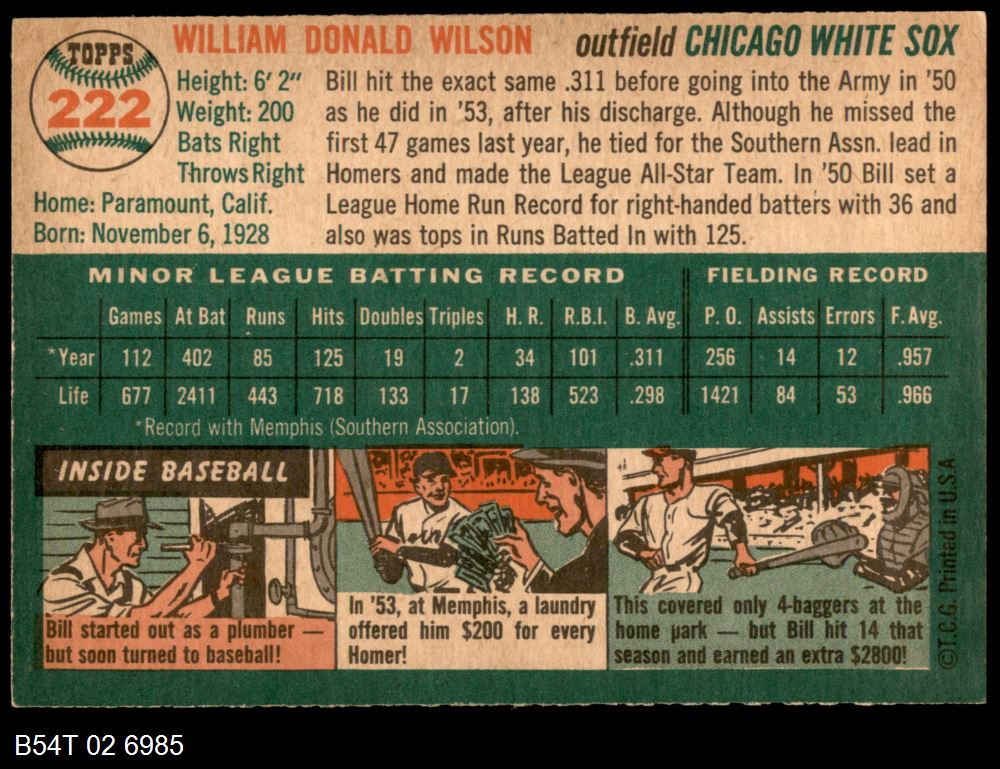| 1954 Topps #222 Bill Wilson | 4 - VG/EX | Front | Back |