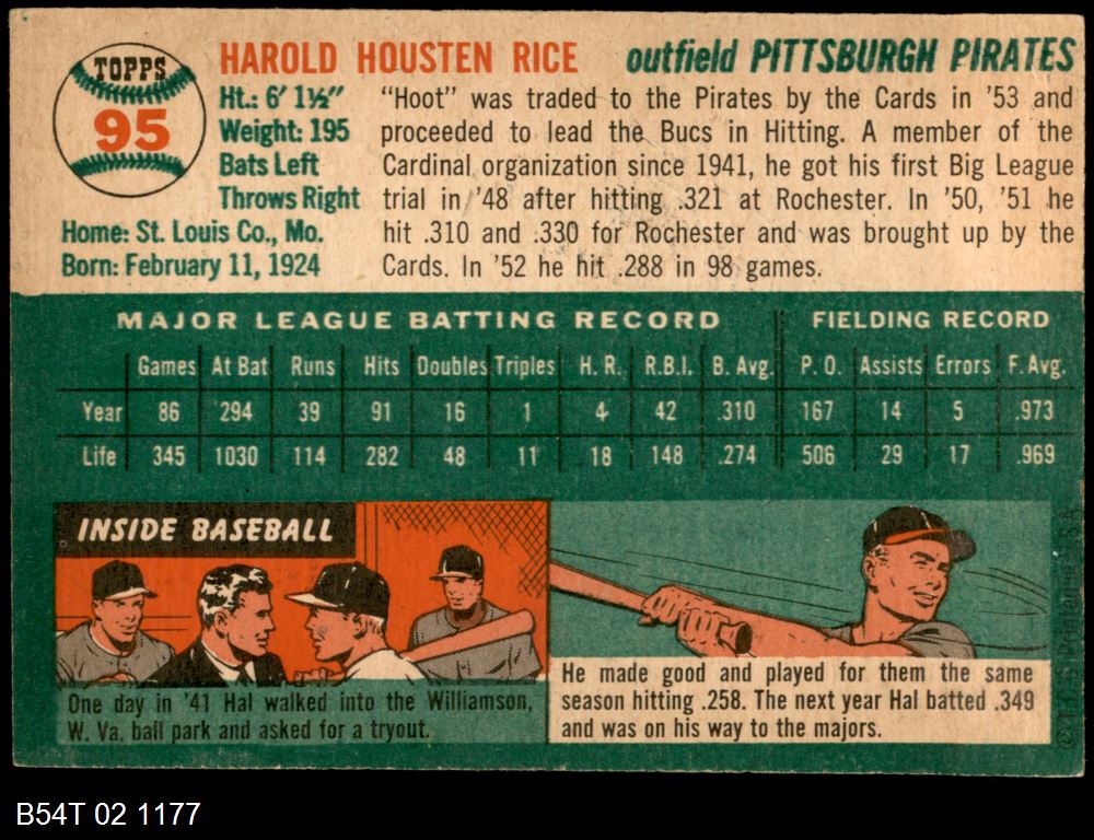 | 1954 Topps #95 Hal Rice | 5 - EX | Front | Back |