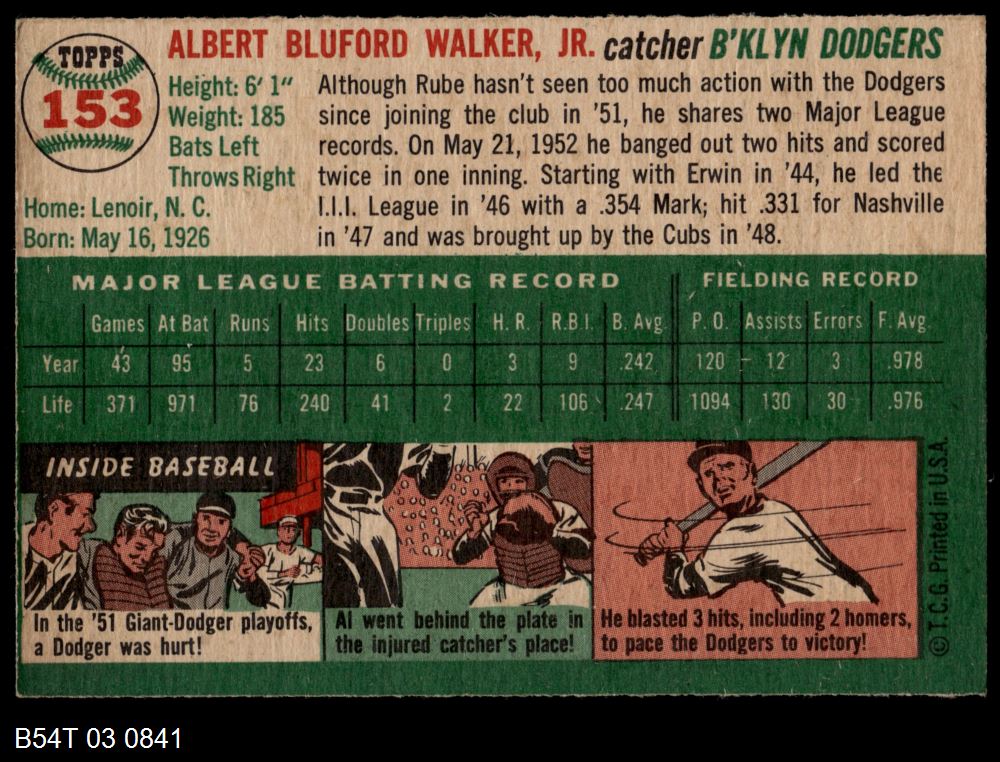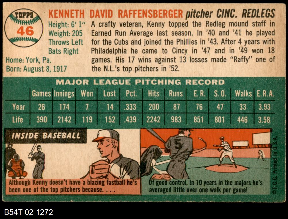 | 1954 Topps #46 WHT Ken Raffensberger | 5 - EX | Front | Back |