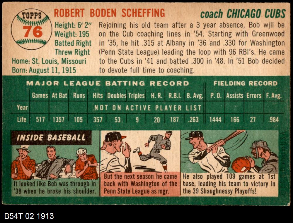 | 1954 Topps #76 Bob Scheffing | 6 - EX/MT | Front | Back |