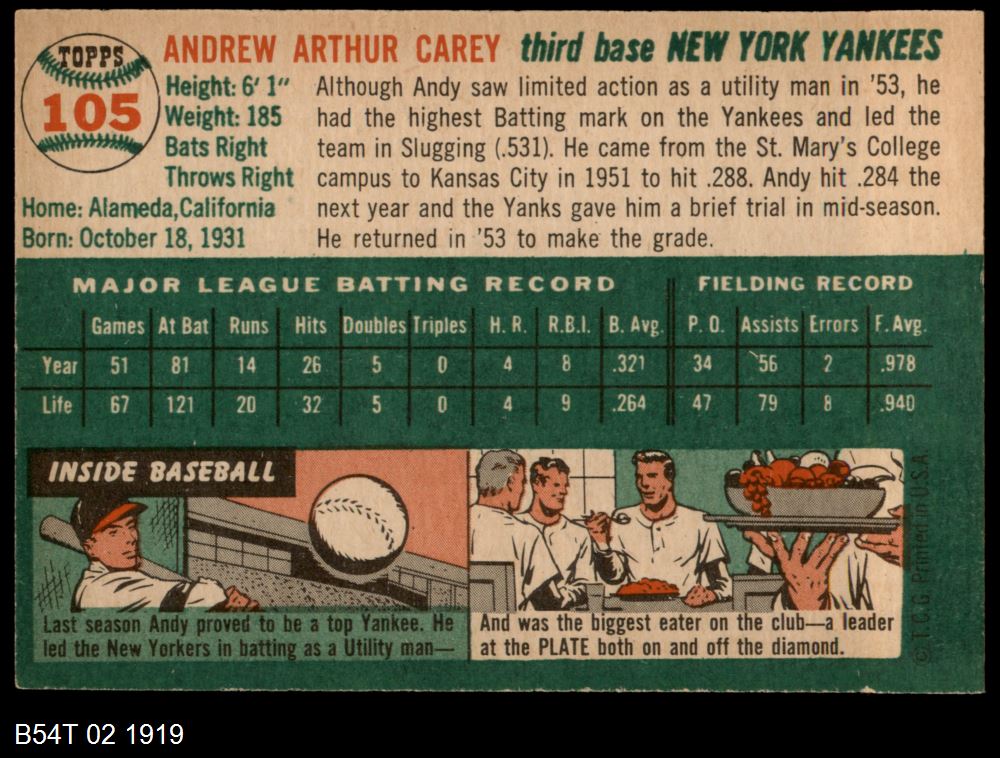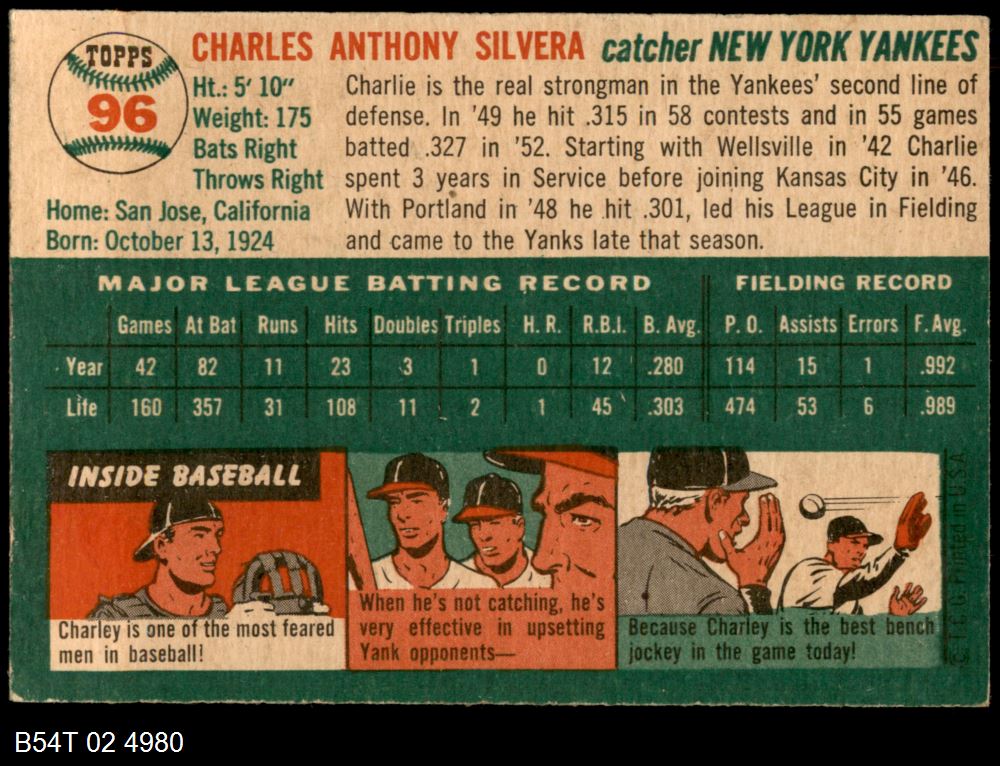 | 1954 Topps #96 Charlie Silvera | 5 - EX | Front | Back |