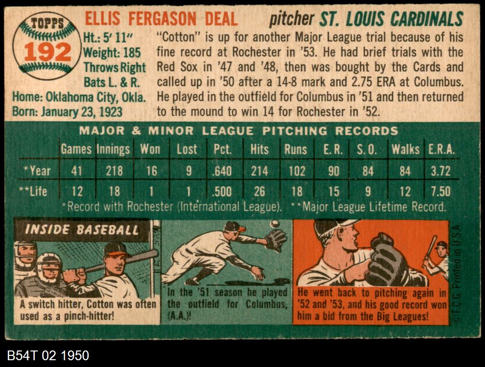 | 1954 Topps #192 Cot Deal | 5 - EX | Front | Back |