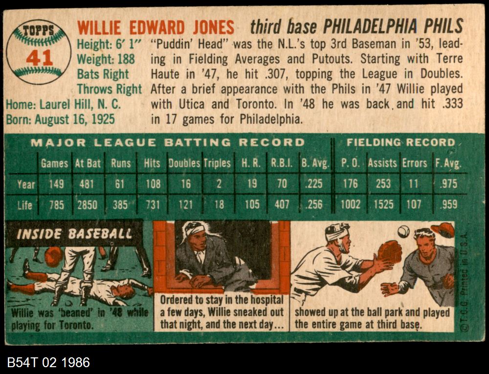 | 1954 Topps #41 WHT Willie Jones | 5 - EX | Front | Back |