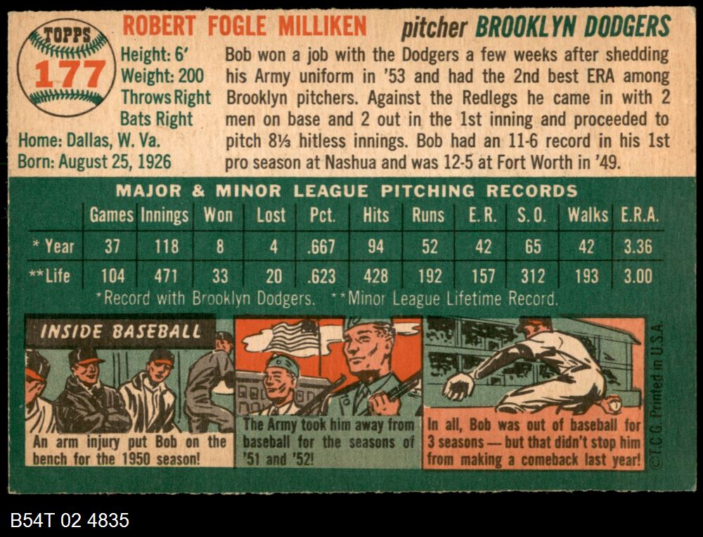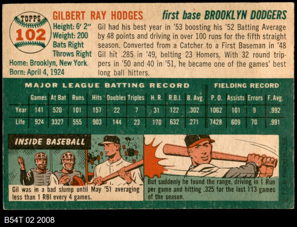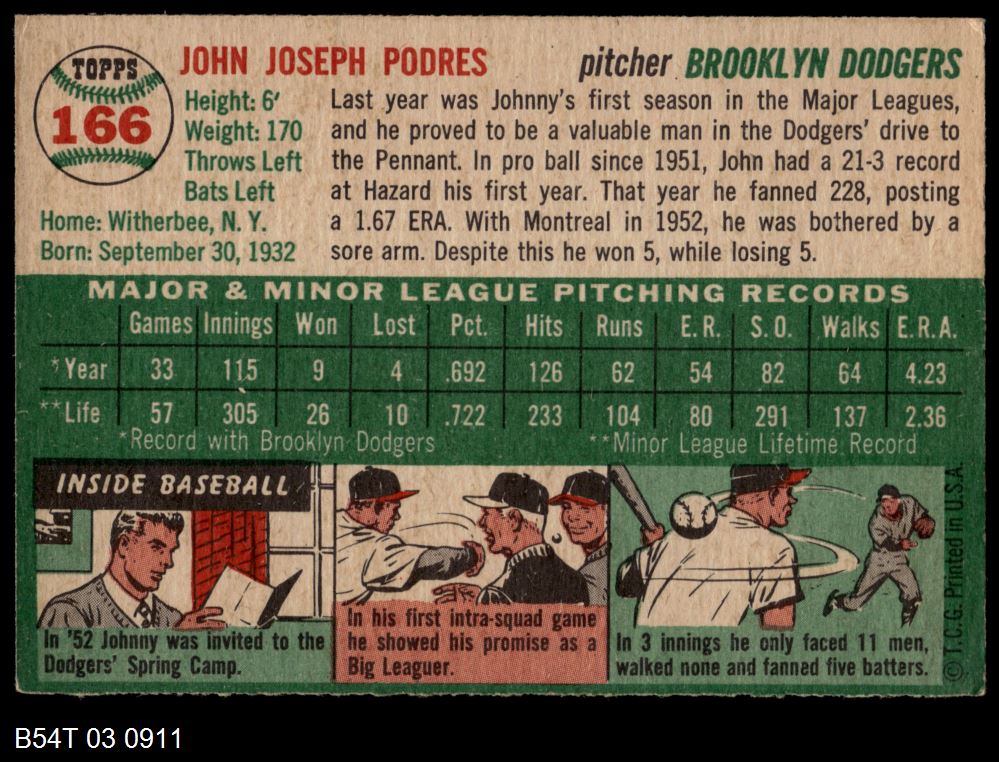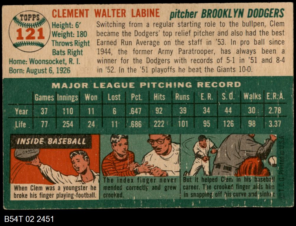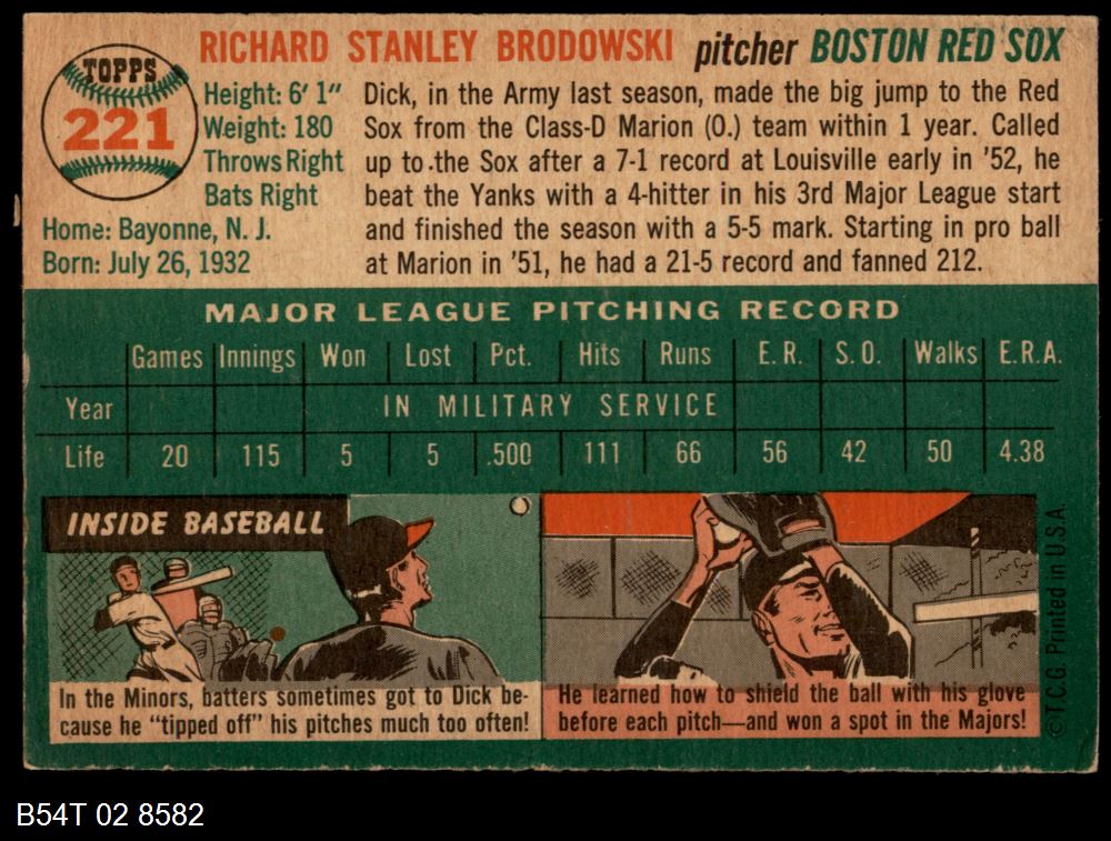 | 1954 Topps #221 Dick Brodowski | 4 - VG/EX | Front | Back |