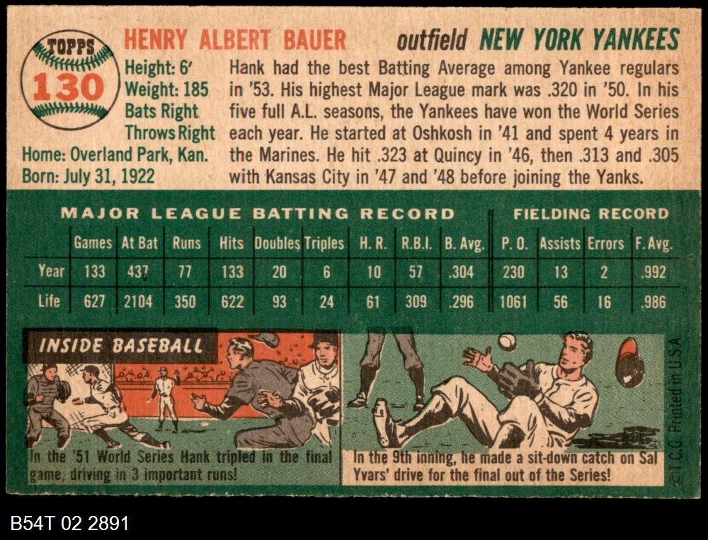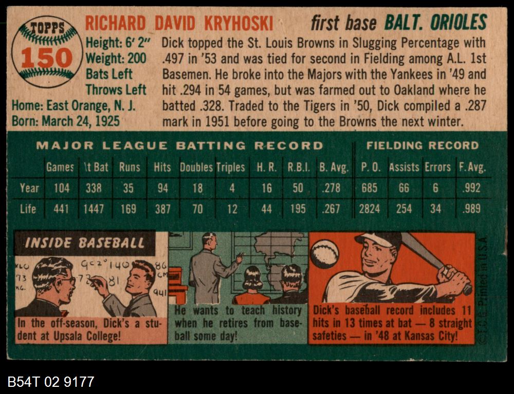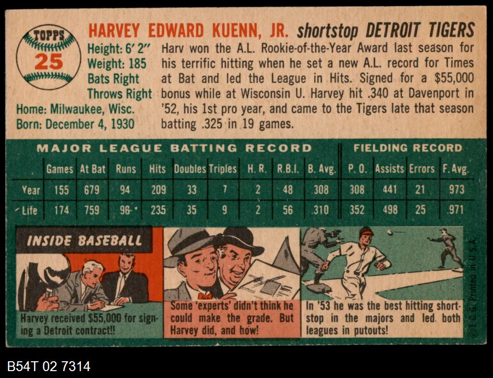 | 1954 Topps #25 WHT Harvey Kuenn | 6 - EX/MT | Front | Back |