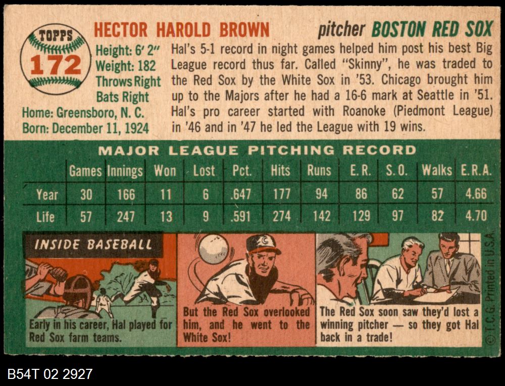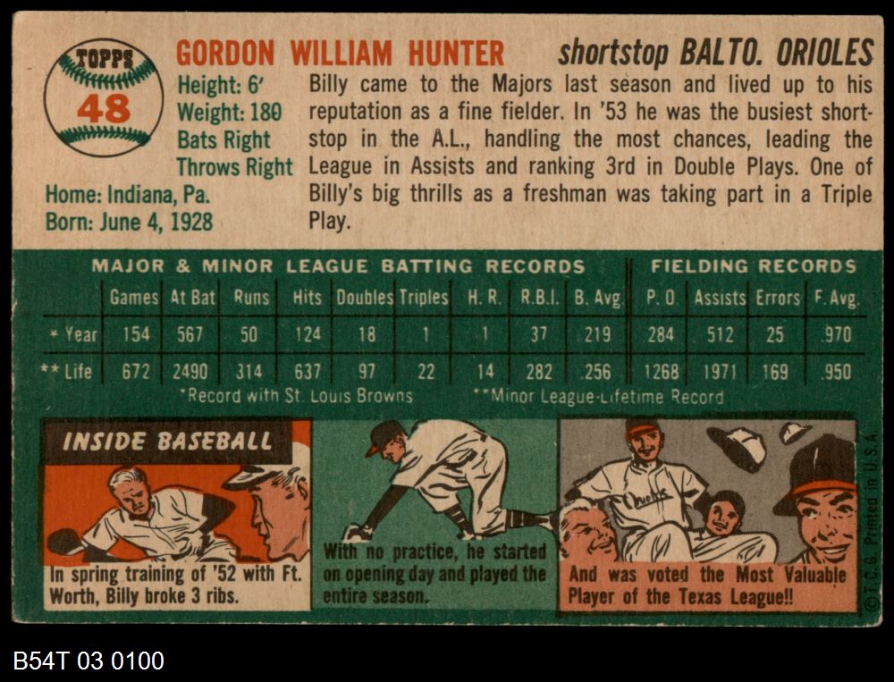 | 1954 Topps #48 WHT Billy Hunter | 3 - VG | Front | Back |