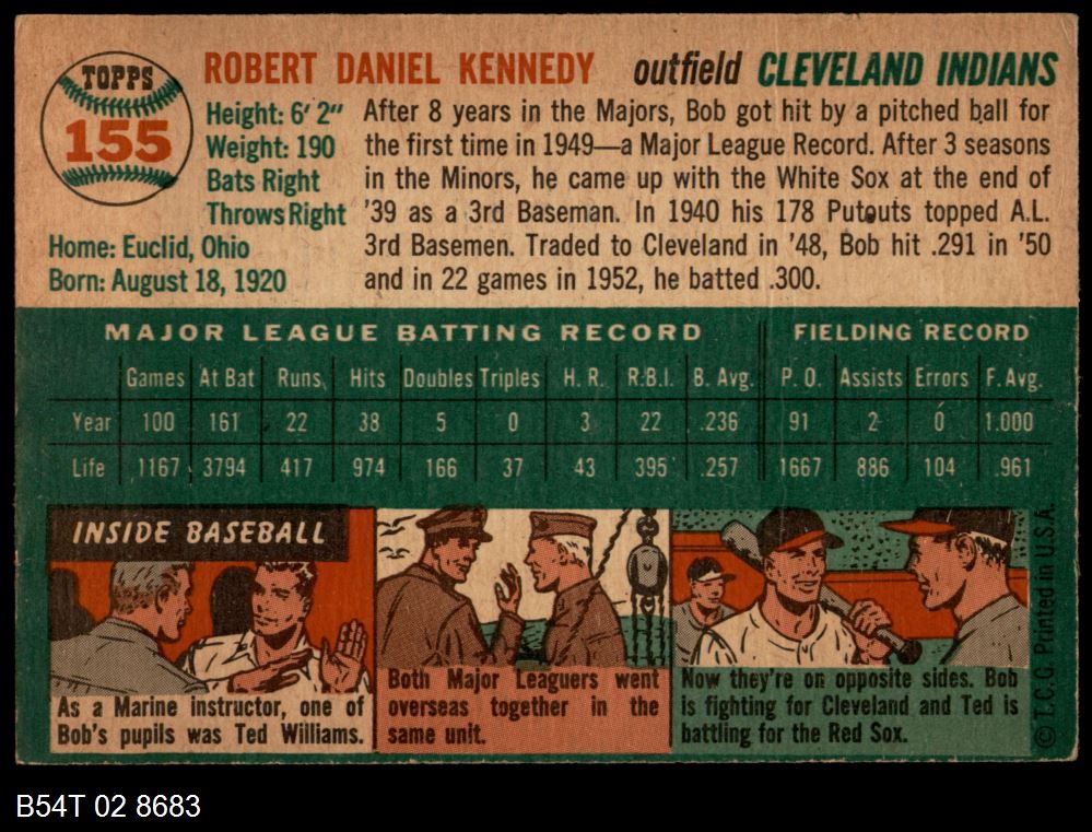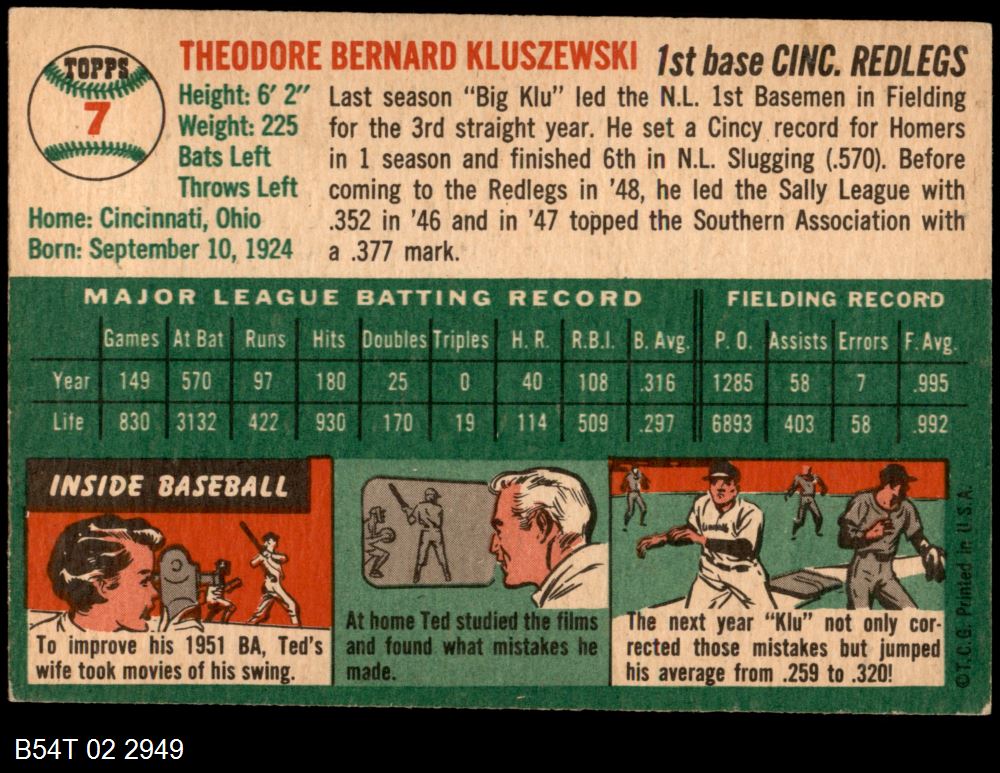 | 1954 Topps #7 WHT Ted Kluszewski | 5 - EX | Front | Back |