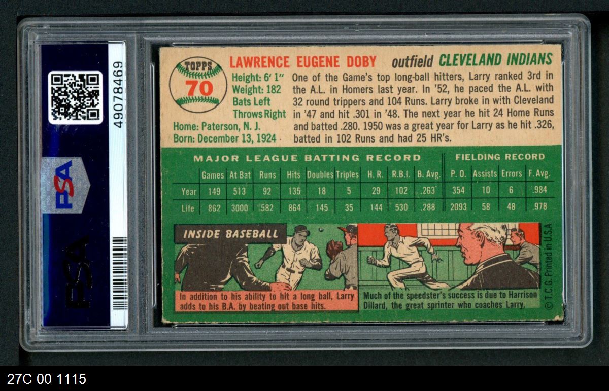 | 1954 Topps #70 Larry Doby | PSA 4 - VG/EX | Front | Back |