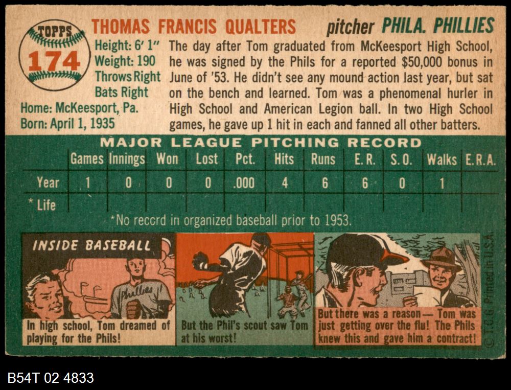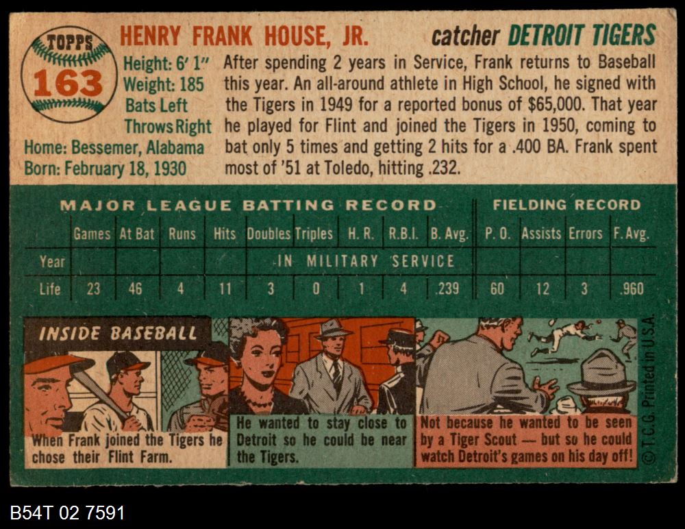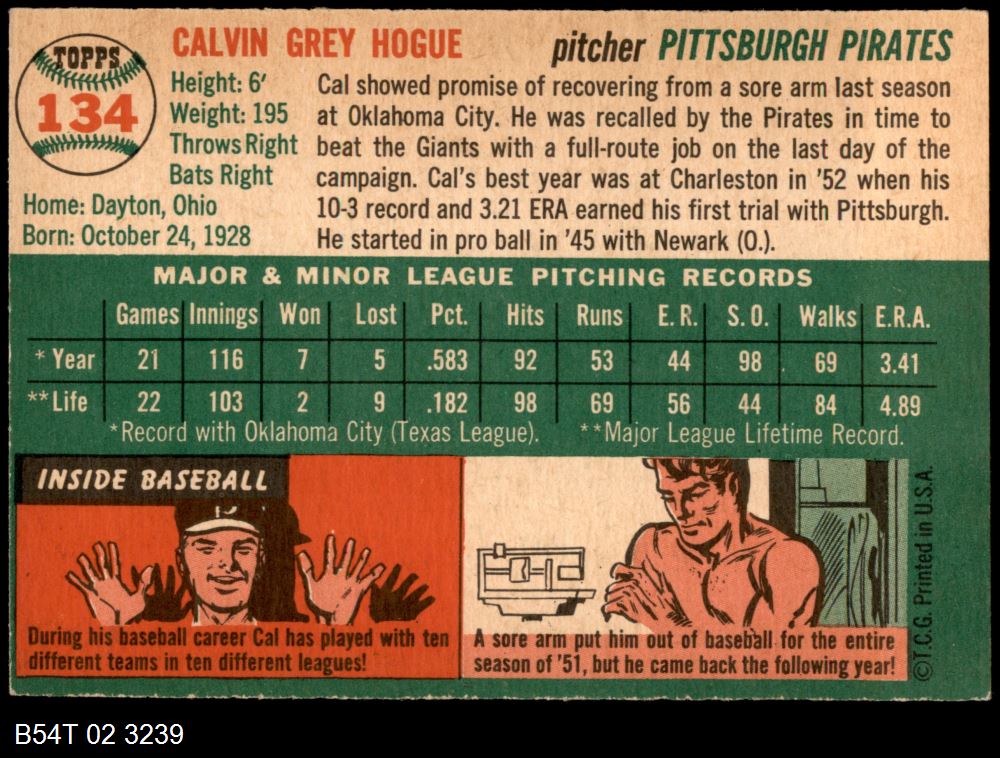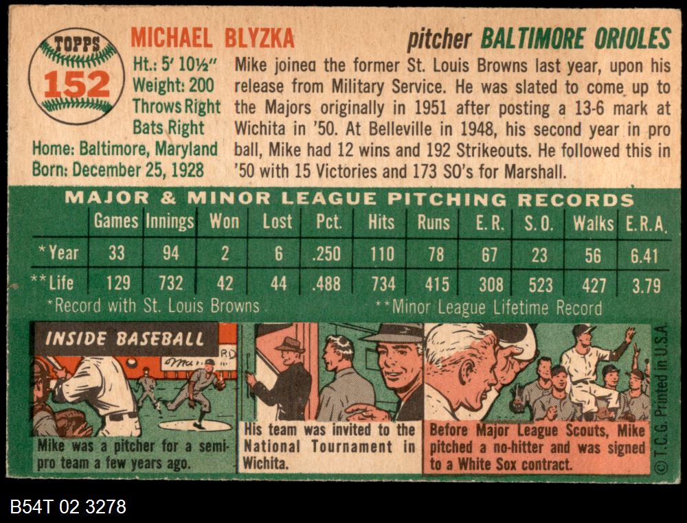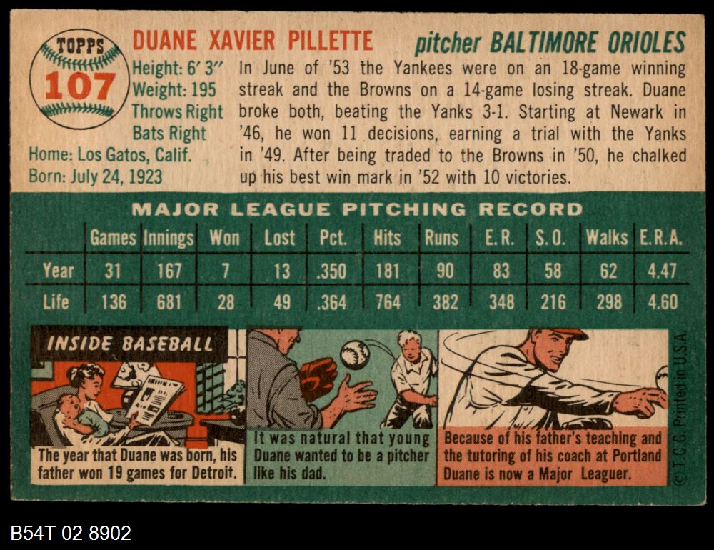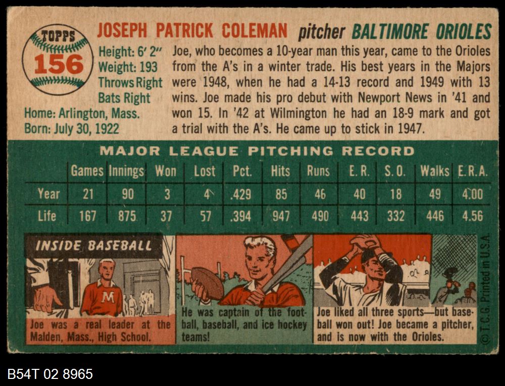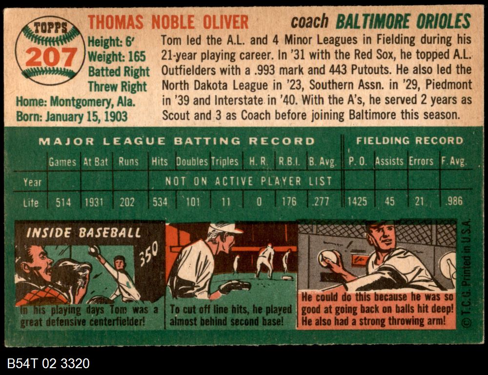 | 1954 Topps #207 Tom Oliver | 6 - EX/MT | Front | Back |