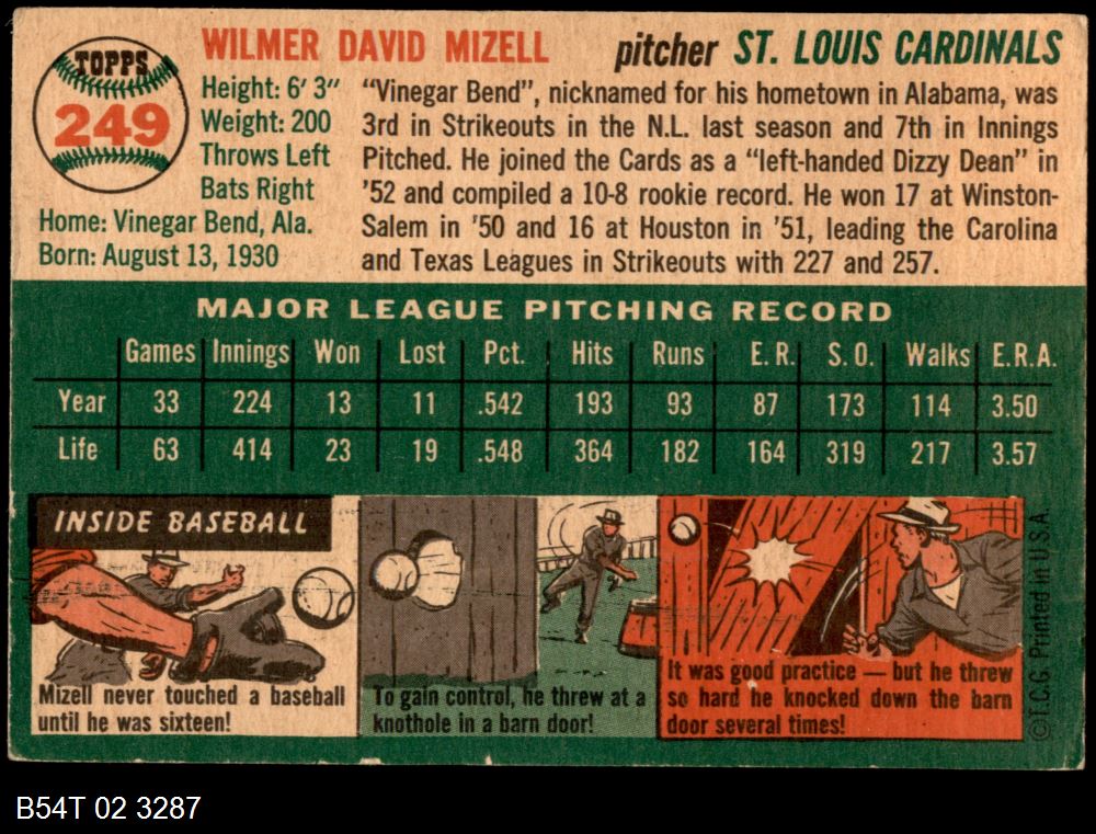 | 1954 Topps #249 Wilmer Mizell | 5 - EX | Front | Back |