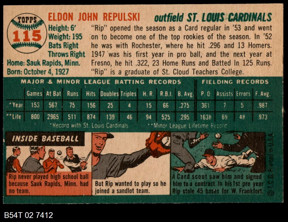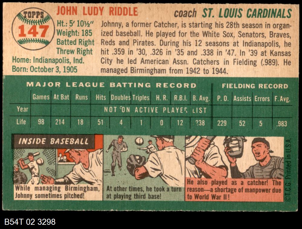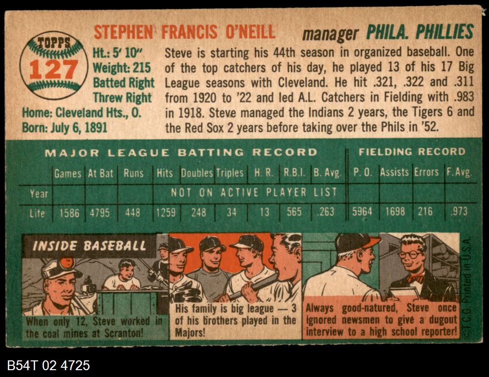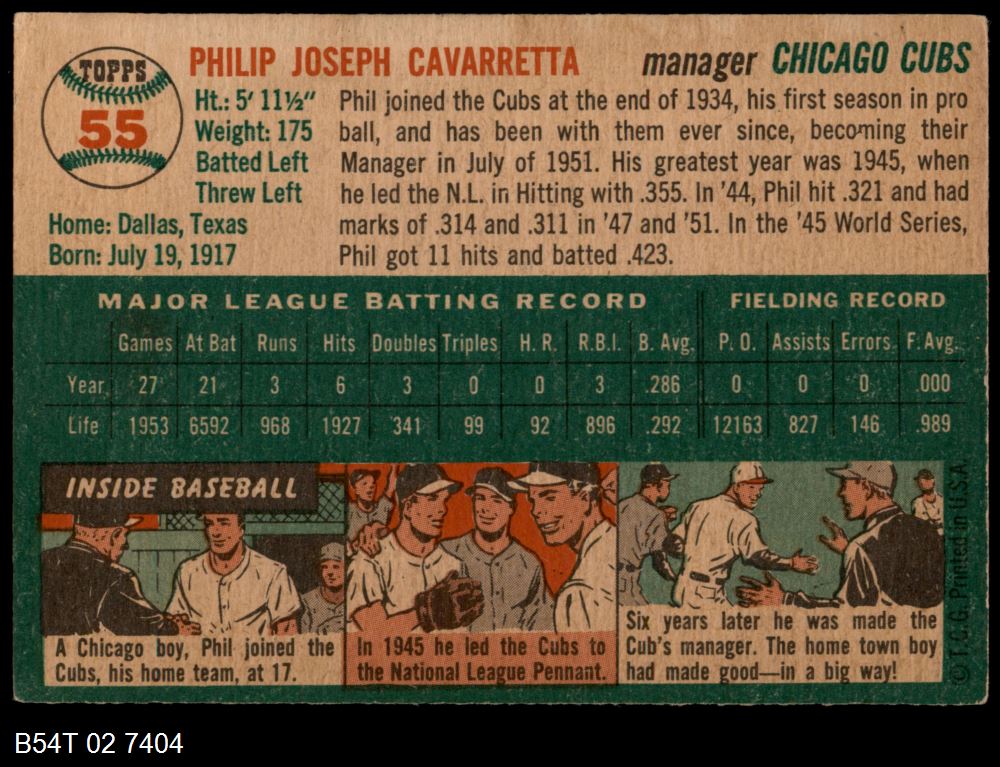 | 1954 Topps #55 Phil Cavarretta | 3 - VG | Front | Back |