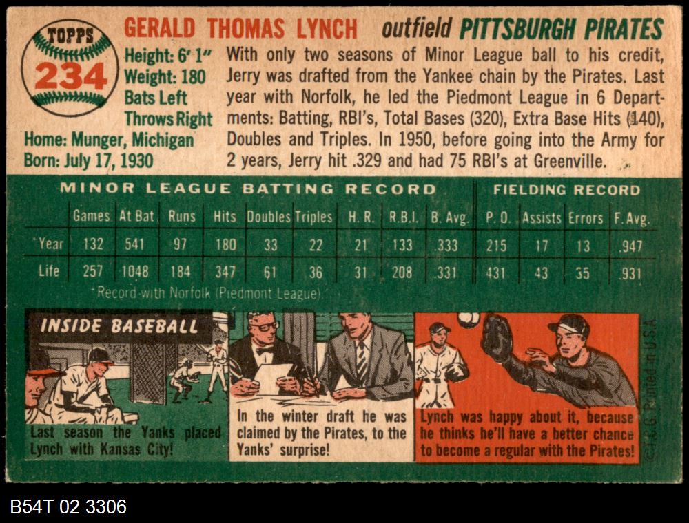 | 1954 Topps #234 Jerry Lynch | 5 - EX | Front | Back |