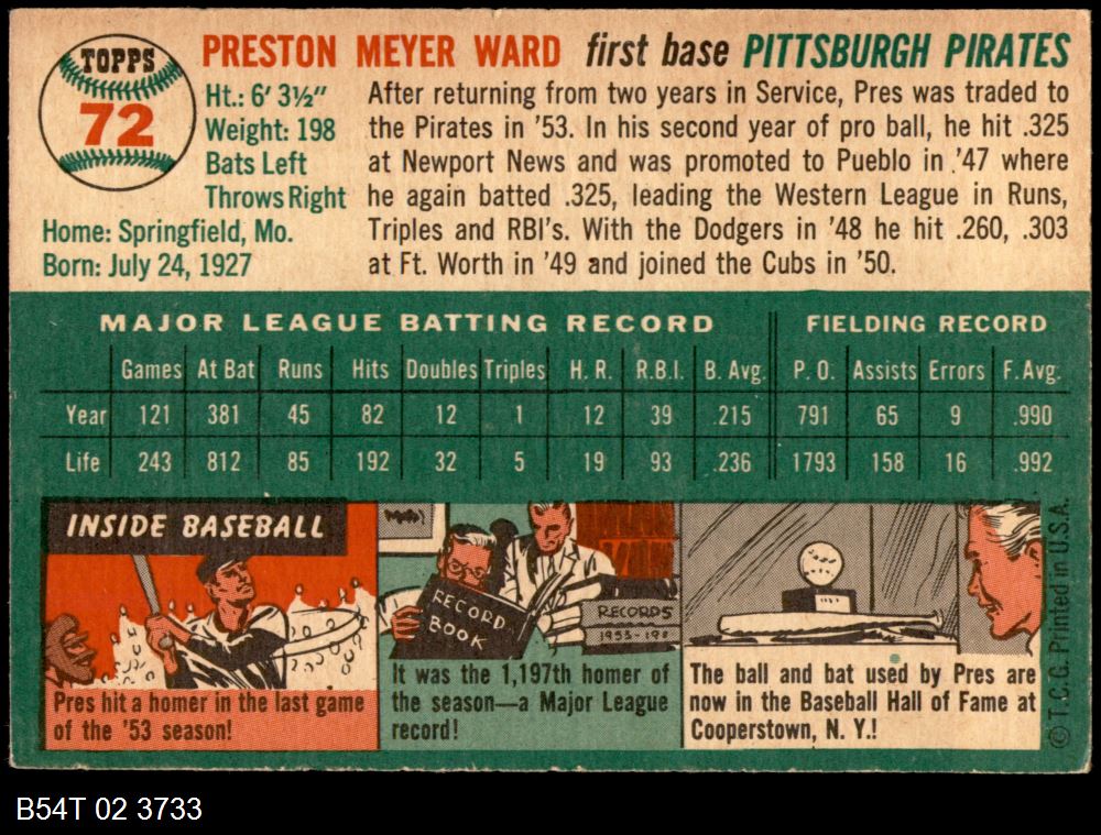 | 1954 Topps #72 Preston Ward | 5 - EX | Front | Back |