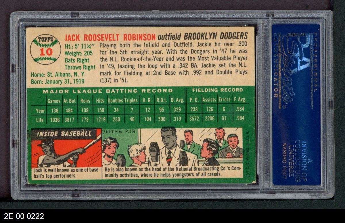 | 1954 Topps #10 WHT Jackie Robinson | PSA 4.5 - VG/EX+ | Front | Back |