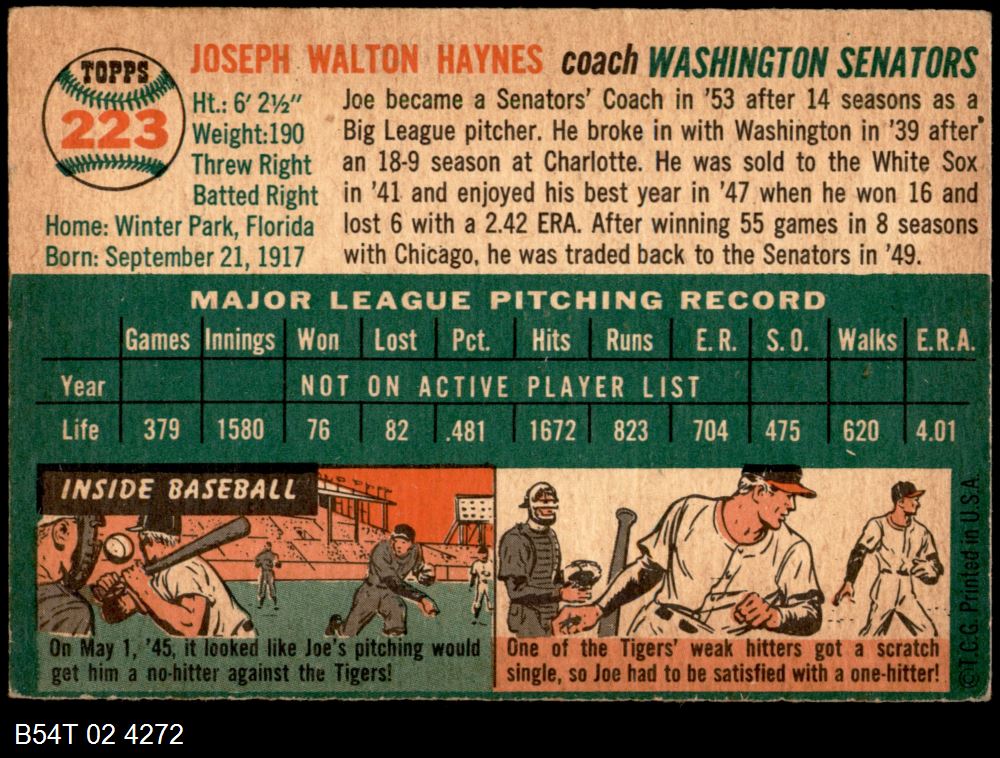 | 1954 Topps #223 Joe Haynes | 4.5 - VG/EX+ | Front | Back |