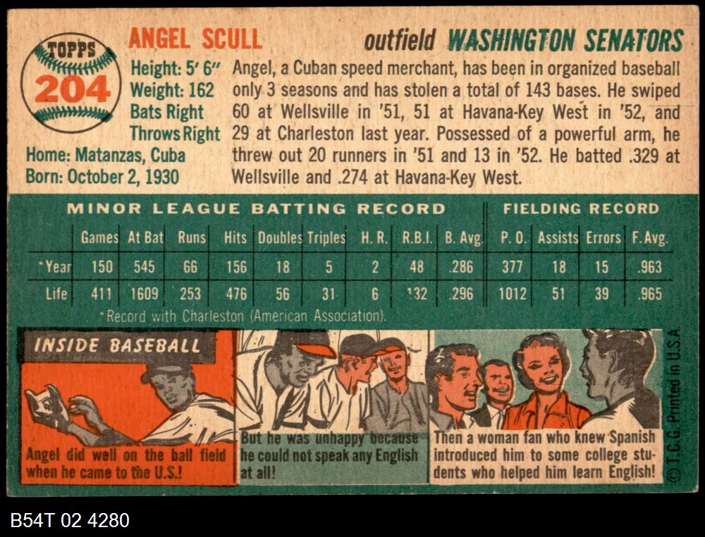 | 1954 Topps #204 Angel Scull | 5 - EX | Front | Back |
