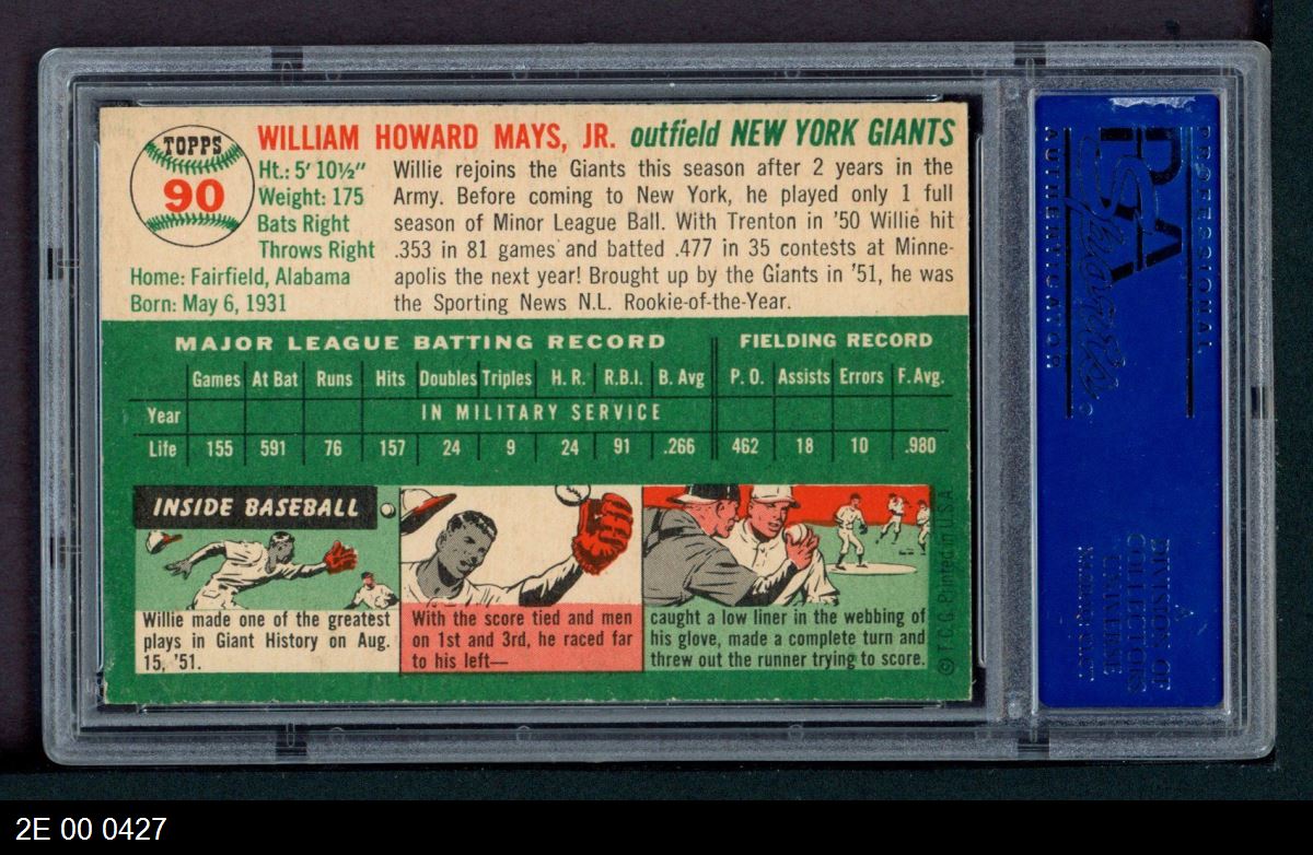| 1954 Topps #90 Willie Mays | PSA 5 - EX | Front | Back |