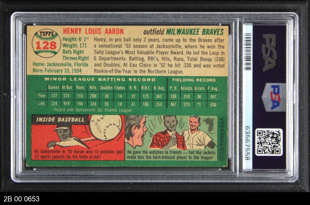 This 1954 Topps Complete Set includes all 250 vintage size baseball cards. The 1954 Topps Baseball Card Set is an all-time classic with Ted Williams as the first and last card in the set, and the great Hall-of-Fame Rookie class of Hank Aaron, Ernie Banks and Al Kaline. The middle-number series (51-75) is the most difficult and expensive to collect.