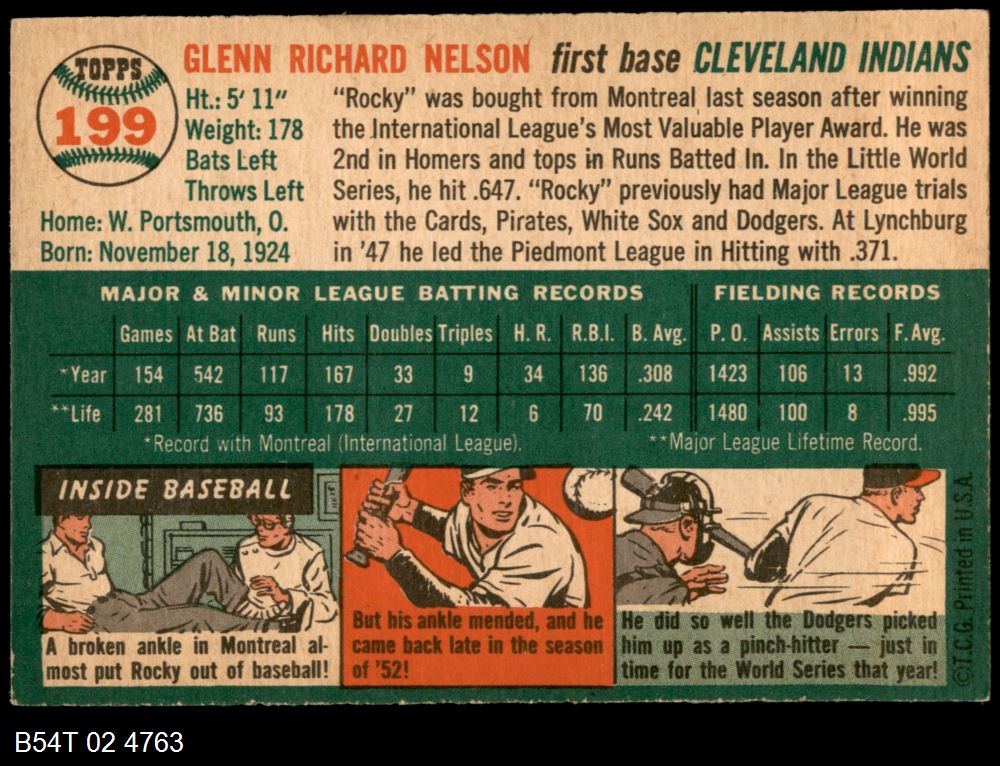 | 1954 Topps #199 Rocky Nelson | 5 - EX | Front | Back |