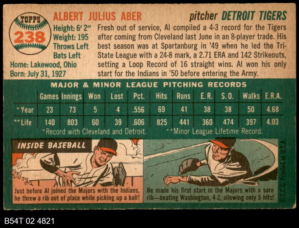 | 1954 Topps #238 Al Aber | 5 - EX | Front | Back |